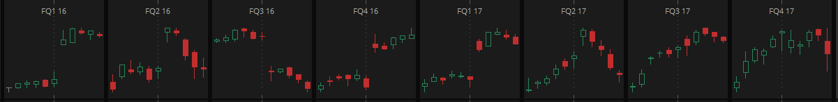 图下是可以看出这一策略在今年的整体牛市下更为突出(虚线位置为财报发布时间,可以看出前后股价的K线):