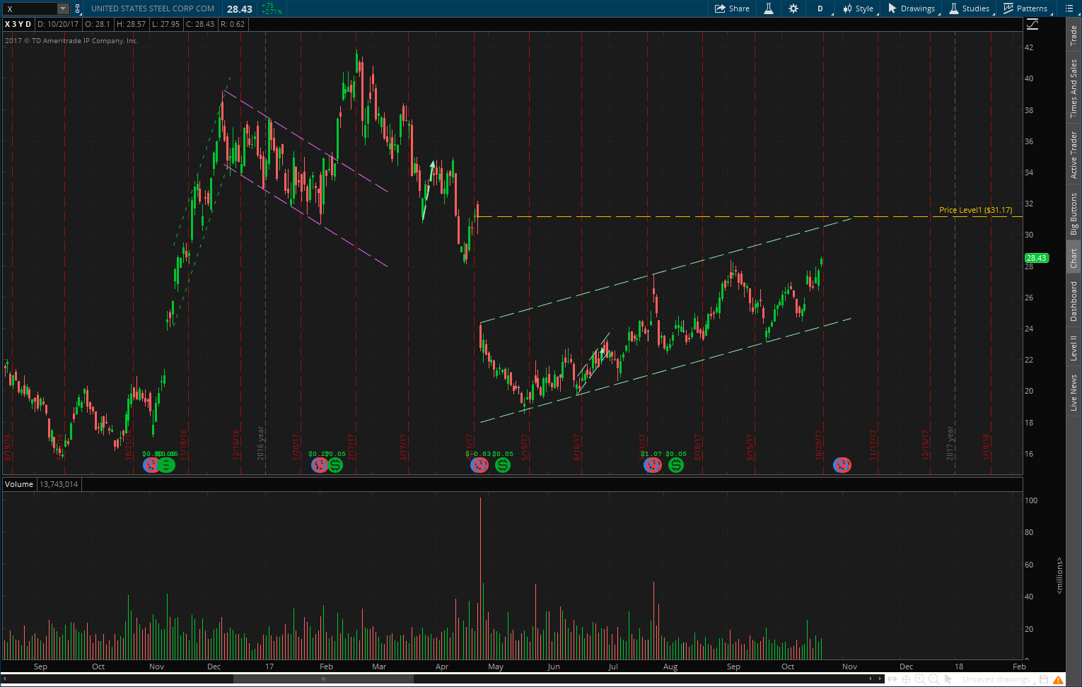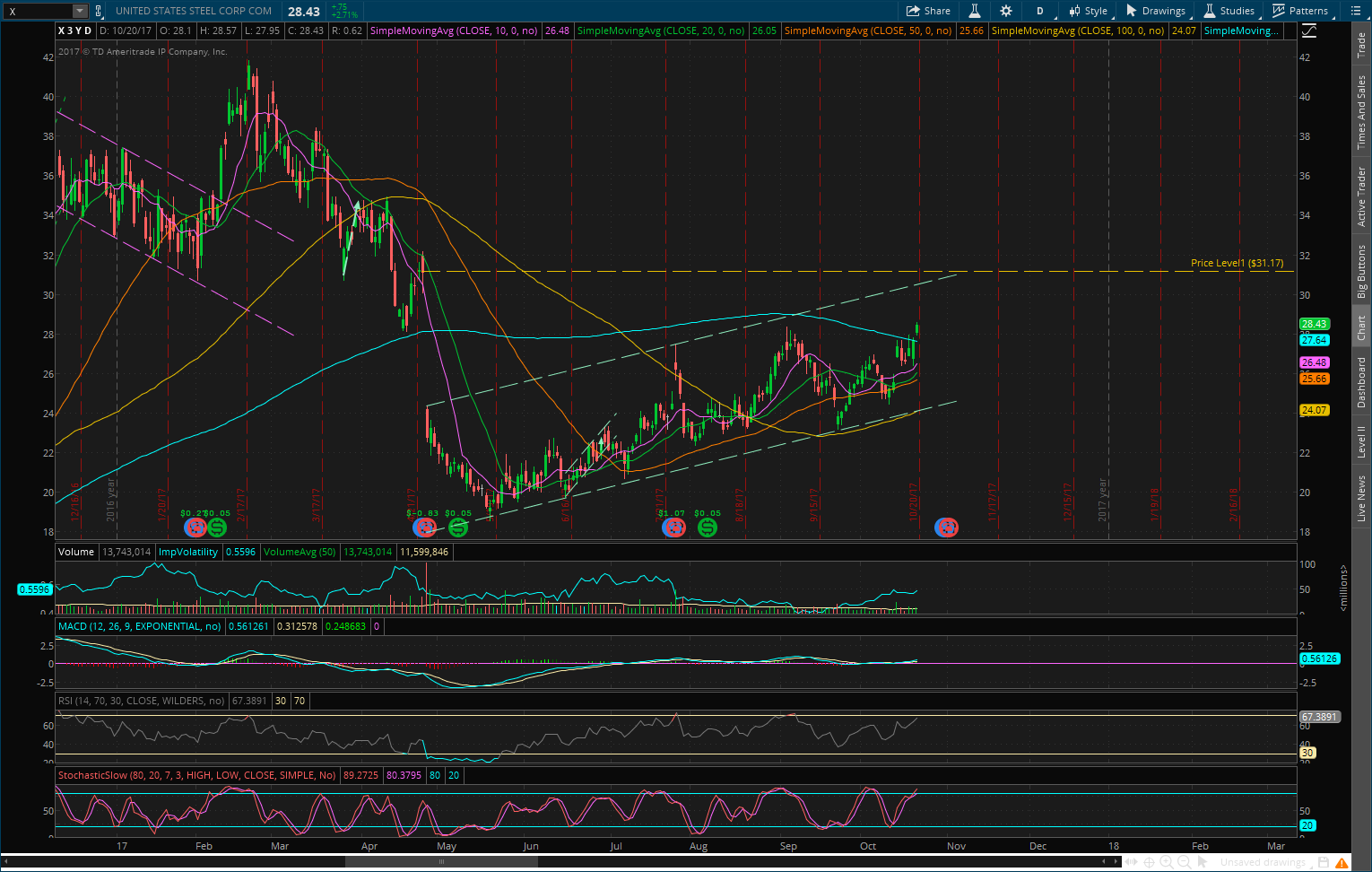 $美国钢铁(X)$一直是我今年比较喜欢的股票,尤其是在贵金属今年强势的情况下, $美国铝业(AA)$, $麦克莫兰铜金(FCX)$等等都表现的非常强势。