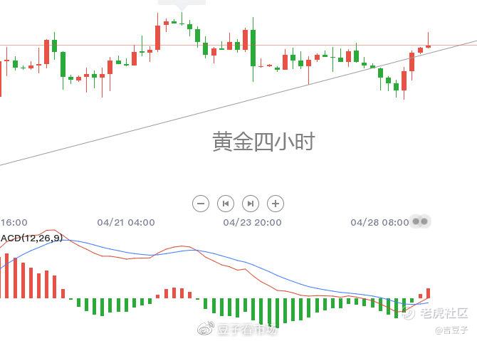 图为黄金四小时级别。拜美联储的鸽派言论所赐,macd的回调很快就结束了,多头放量已经开始,只不过现在自高点回落后,在85附近犹豫,日内没有突破新高97的话,还是以区间看待,今天75应该是给不到,80上下就可以做多了,90上下做空,暂时先以区间看待。