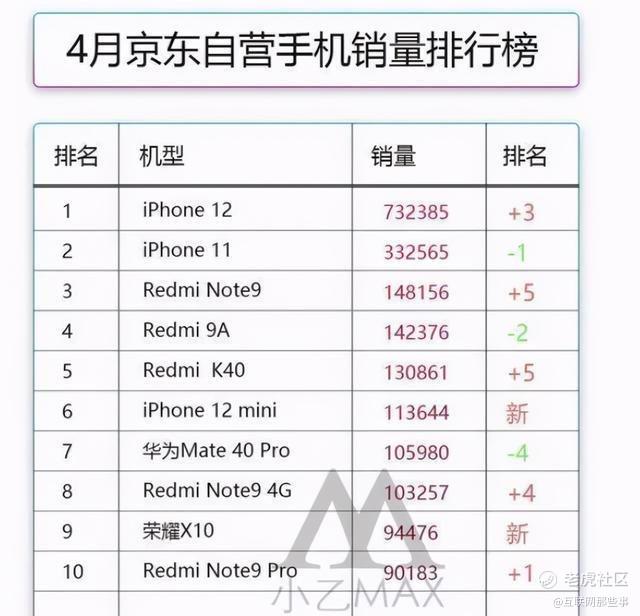 我们虽无法精准测算小米卖了多少台4000~6000价段的机子,但是通过一些电商平台的数据,还是可以反估销量情况的。依据2021年4月份的《京东自营手机销量排行榜》,我们发现,高端机型真正上榜的只有iPhone 和严重缺货的华为。Redmi和荣耀X10这些低端千元机不作为统计对象。而去年秋天发布的Mate 40 Pro仍然能斩获10万+的销量,小米的新品11/11 Pro/Ultra未见一个上榜。注意,Mate 40 Pro售价是6499元起。