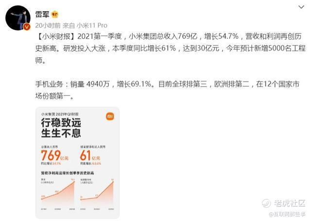 5月26日,中国科技圈最开心的人,当属雷军,一边是诉讼官司赢了美国,被移出制裁名单,一边是2021年Q1捷报传来,总营收769亿、净利润61亿创小米史上最好成绩!但双喜临门的雷军,笑容背后,尽是焦虑——小米的高端梦仍存变数!