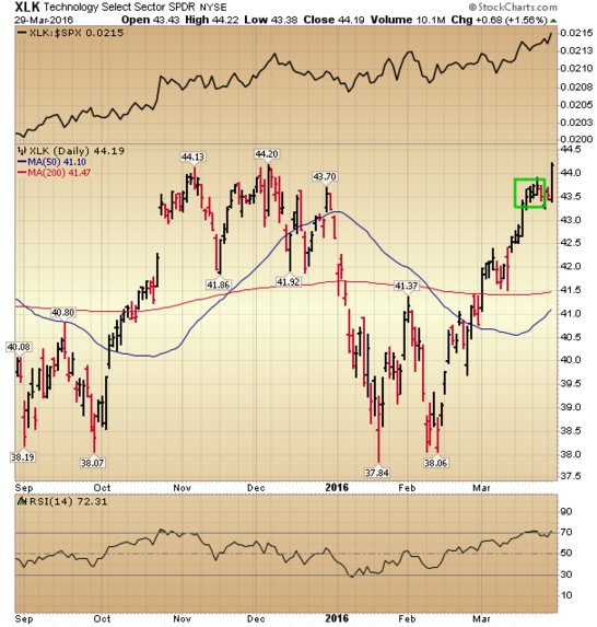 科技$(XLK)$在前高点附近构筑平台,经过充分调整后昨日已继续上行。