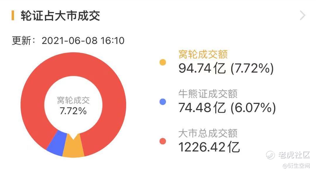 其中,窝轮总成交94.74亿港元,牛熊证总成交74.48亿港元。