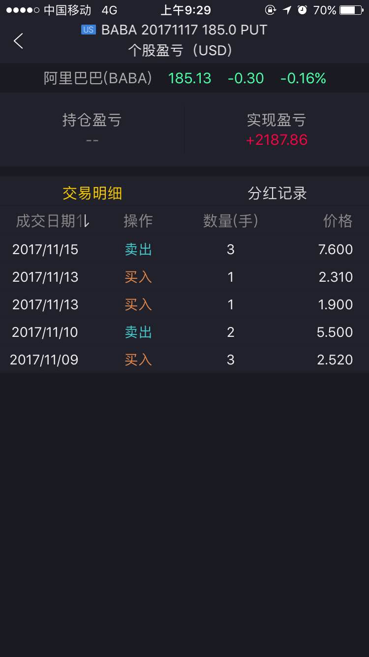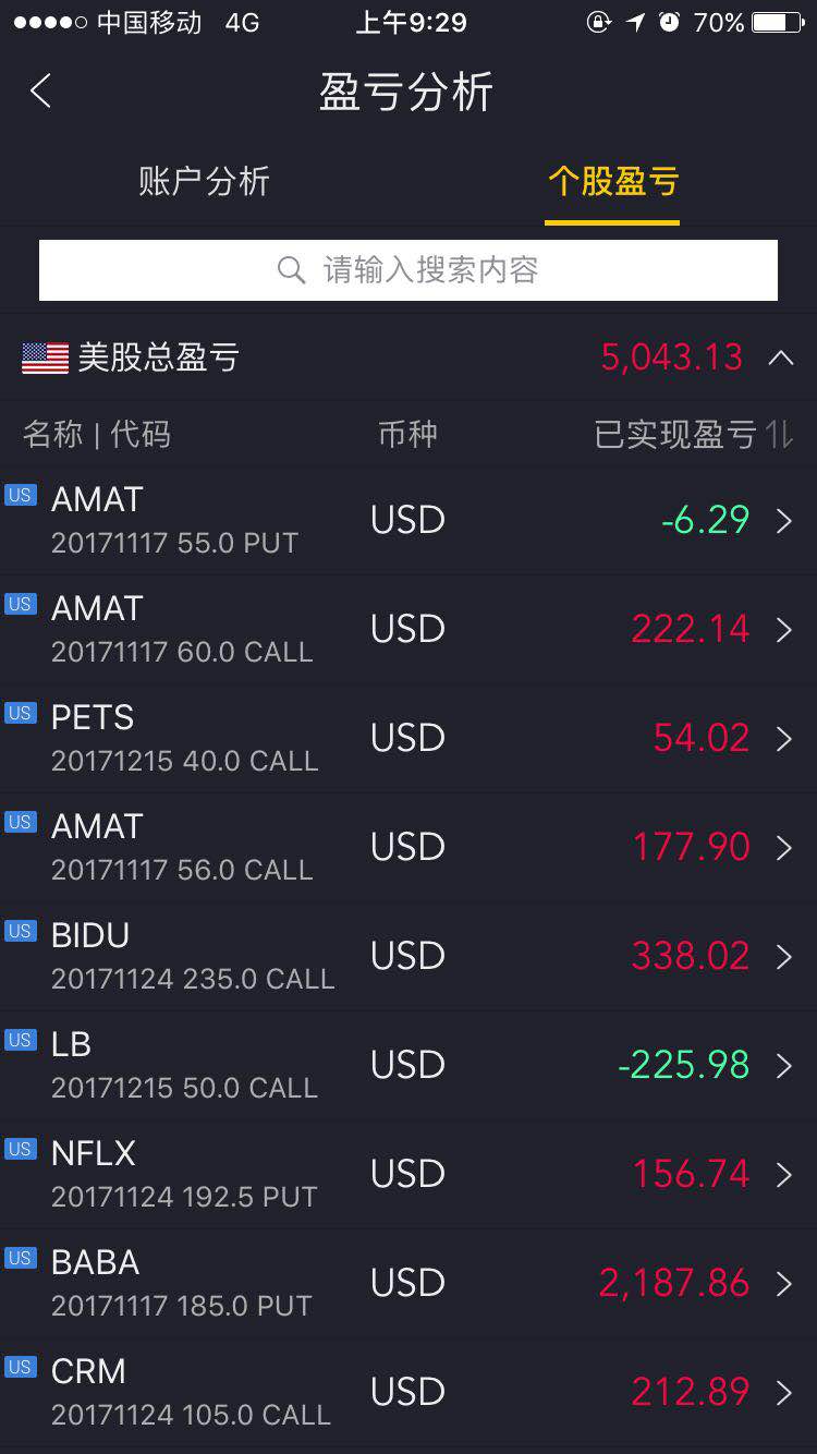 本周终于扭转了亏损的局面,并且获得了盈利,上一篇帖子说从最低点开始慢慢的回本,这周提前实现了目标。得益于阿里巴巴和奈飞的put,两个几乎都卖在最高点,同时目前还持有奈飞put,盈利70%。