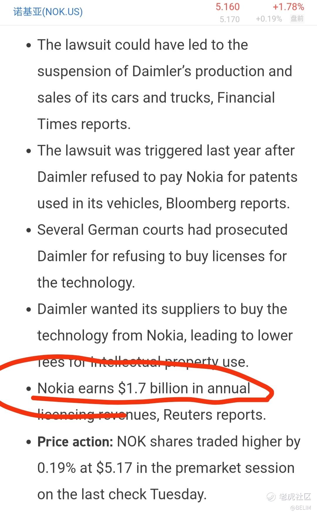 真新闻,现在诺基亚每年收的专利费总共是14亿欧元