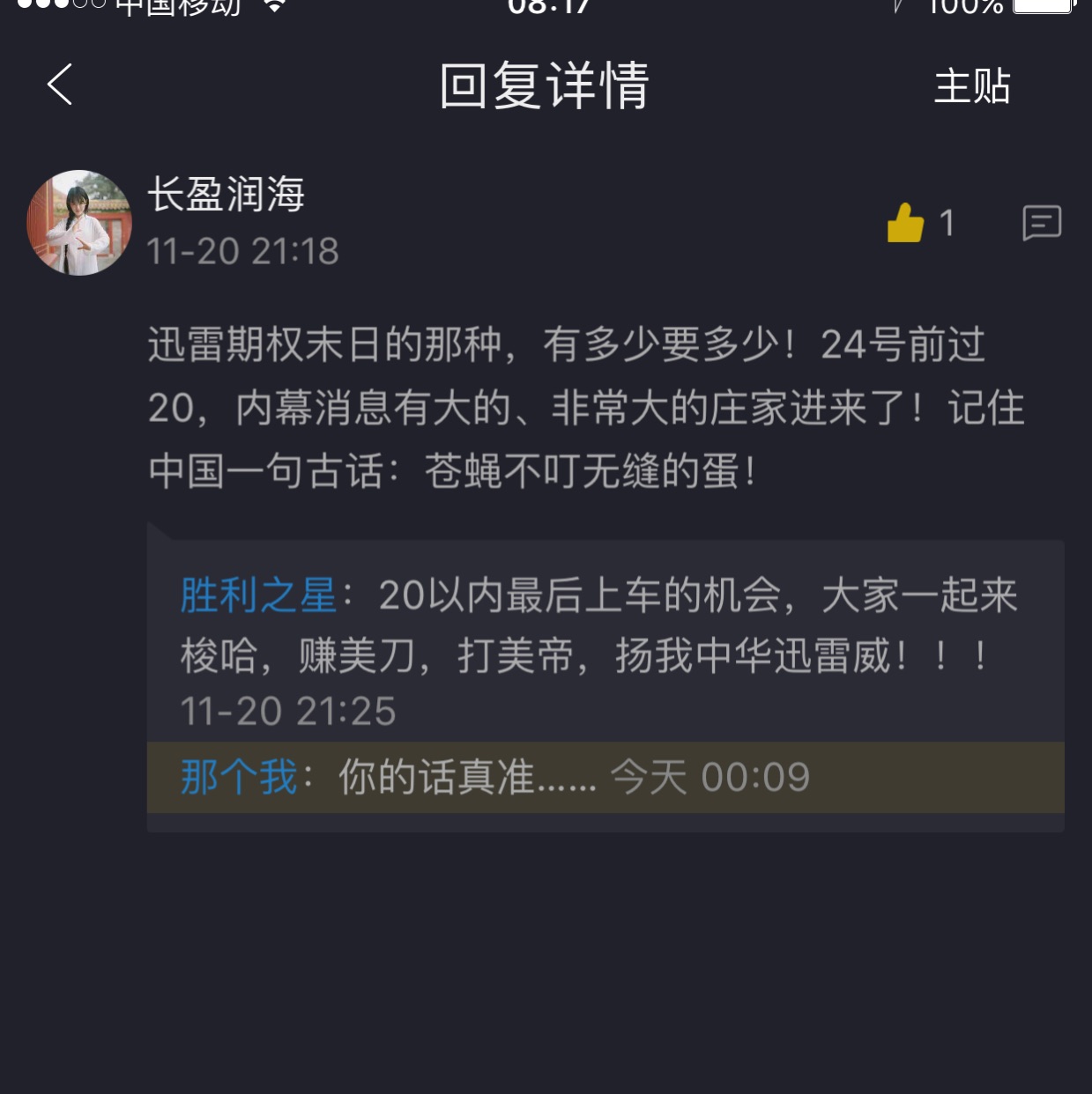$迅雷(XNET)$这个盘子很小,大的基金公司进来无风也要三尺浪,所以最近股价波动很大,但可以肯定的是能吸引老美基金的一定不是迅雷固有业务,他们的鼻子嗅到了云的味道,也就是中国人常说的一句话:苍蝇不叮无缝蛋,迅雷可以给风险投资家们带来惊喜,至少说有可能会有惊喜,什么是惊喜:请黄老爷在解释一下什么他妈的叫惊喜!惊喜就是只要半年内国家不出台限制玩客币的政策,让迅雷顺利通过售卖玩客云扩大玩家,等到了法不责众的时候,国家就会默认这种东西,就像支付宝刚出来的时候,也有好多非议,说支付宝抢了银行的饭碗,资金安全没有保障,国家只要一个文件阿里马云就得进去,但是时间证明,国家对新鲜事物的态度是开放的!投行们没想要多长时间,只要能坚持到年底财报就行,投资回报率至少10倍起!
