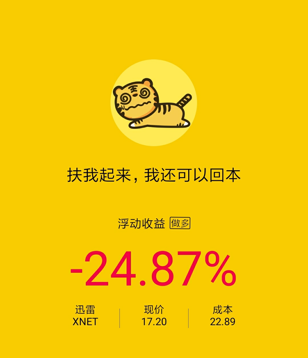 $迅雷(XNET)$ 赚都是百分之四的赚,亏都是20+的亏,😂 #晒盈亏得研报#