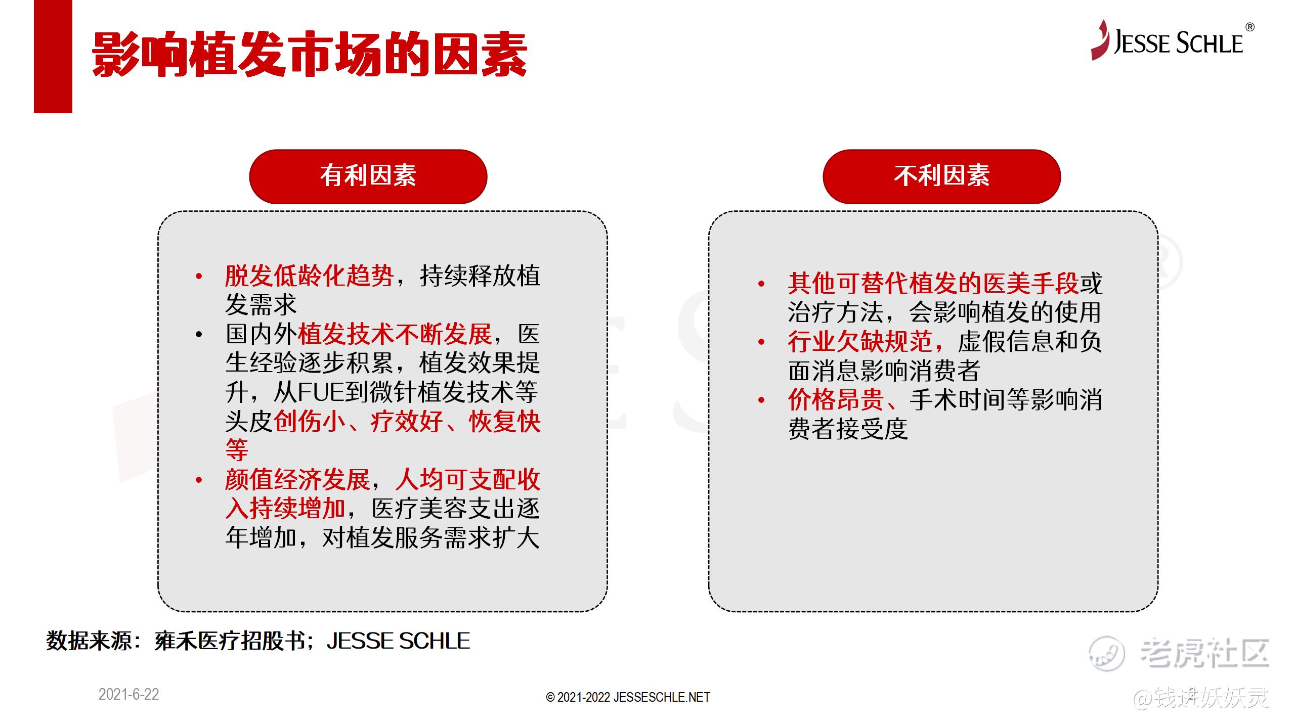 可以看到,如果有2.5亿人有脱发的烦恼,而其中严重脱发患者且具有一定经济实力的人会寻求植发的医疗服务,这个市场的用户规模还是可观的。而且,2020年在中国进行的植发手术仅约51.6万例,渗透率为0.21%,表明大量市场需求未得到满足。