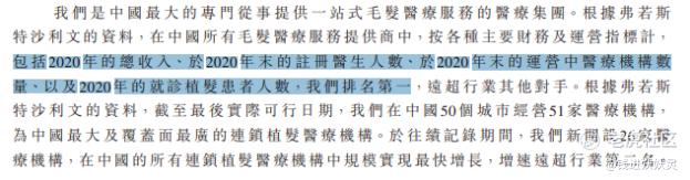 雍禾医疗在招股书里说自己是植发领域的老大:包括2020年的总收入、集团注册医生数量、运营中的医疗机构数量以及就诊植发患者人数等。