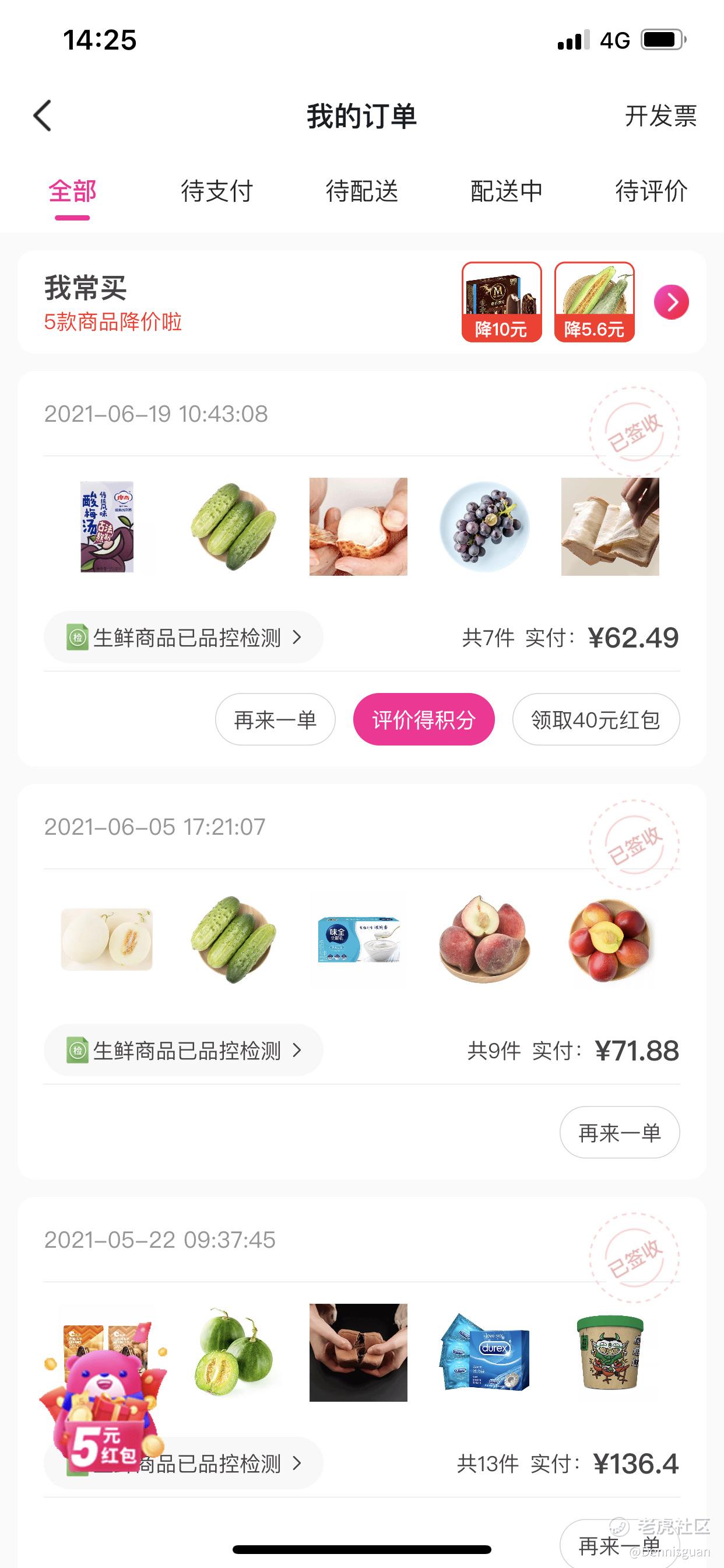 18年就开始用每日优鲜了,最早的一批客户,送货快,品类广,水果蔬菜新鲜,会一直用下去