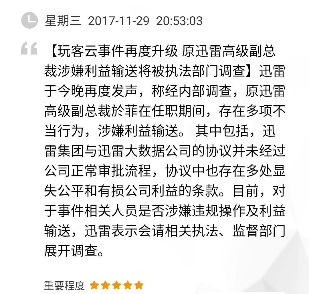 {"i18n":{"language":"zh_CN"},"detailType":1,"isChannel":false,"data":{"magic":2,"id":123907,"tweetId":"123907","gmtCreate":1511960797819,"gmtModify":1704884853935,"author":{"id":3453375871377932,"idStr":"3453375871377932","authorId":3453375871377932,"authorIdStr":"3453375871377932","name":"风清扬扬","avatar":"https://static.laohu8.com/f68f000247d79fb1e63903f2d462f3c0","vip":1,"userType":1,"introduction":"","boolIsFan":false,"boolIsHead":false,"crmLevel":2,"crmLevelSwitch":0,"individualDisplayBadges":[],"fanSize":12,"starInvestorFlag":false},"themes":[],"images":[{"img":"https://static.laohu8.com/7935a1e47113ed7361cfc60852c8f5ab"}],"coverImages":[{"img":"https://static.laohu8.com/7935a1e47113ed7361cfc60852c8f5ab"}],"title":"玩客云事件再度升级","extraTitle":"","html":"<html><head></head><body><p>$迅雷(XNET)$ 事情越闹越大了</p> <img src=\"https://static.laohu8.com/7935a1e47113ed7361cfc60852c8f5ab\"></body></html>","htmlText":"<html><head></head><body><p>$迅雷(XNET)$ 事情越闹越大了</p> <img src=\"https://static.laohu8.com/7935a1e47113ed7361cfc60852c8f5ab\"></body></html>","text":"$迅雷(XNET)$ 事情越闹越大了","highlighted":1,"essential":1,"paper":2,"likeSize":0,"commentSize":5,"repostSize":0,"favoriteSize":0,"link":"https://laohu8.com/post/123907","repostId":0,"isVote":1,"tweetType":1,"viewCount":3157,"commentLimit":10,"likeStatus":false,"favoriteStatus":false,"reportStatus":false,"symbols":["XNET"],"verified":2,"subType":0,"readableState":1,"langContent":"CN","currentLanguage":"CN","warmUpFlag":false,"orderFlag":false,"shareable":true,"causeOfNotShareable":"","featuresForAnalytics":[],"commentAndTweetFlag":false,"andRepostAutoSelectedFlag":false,"upFlag":false,"length":26,"xxTargetLangEnum":"ZH_CN"},"commentList":[{"id":535198,"commentId":"535198","gmtCreate":1511961156513,"gmtModify":1511961156513,"authorId":121767421050240,"author":{"id":121767421050240,"idStr":"121767421050240","authorId":121767421050240,"name":"fm0603","avatar":"https://static.laohu8.com/default-avatar.jpg","vip":1,"crmLevel":1,"crmLevelSwitch":0,"individualDisplayBadges":[]},"repliedAuthorId":0,"objectId":123907,"objectIdStr":"123907","type":1,"supId":0,"supIdStr":"0","prevId":0,"prevIdStr":"0","content":"公安应该介入了,所谓的九篇,估计就只有一篇能出街了","text":"公安应该介入了,所谓的九篇,估计就只有一篇能出街了","html":"公安应该介入了,所谓的九篇,估计就只有一篇能出街了","likeSize":0,"commentSize":0,"subComments":[],"verified":10,"allocateAmount":0,"commentType":"valid","coins":0,"score":0,"disclaimerType":0},{"id":535224,"commentId":"535224","gmtCreate":1511961685220,"gmtModify":1511961685220,"authorId":3468228876231919,"author":{"id":3468228876231919,"idStr":"3468228876231919","authorId":3468228876231919,"name":"齐记全球水果","avatar":"https://static.laohu8.com/c390f76d88ec22c10d934ec61097ce43","vip":1,"crmLevel":1,"crmLevelSwitch":0,"individualDisplayBadges":[]},"repliedAuthorId":0,"objectId":123907,"objectIdStr":"123907","type":1,"supId":0,"supIdStr":"0","prevId":0,"prevIdStr":"0","content":"应该是利好,刚才看错了","text":"应该是利好,刚才看错了","html":"应该是利好,刚才看错了","likeSize":0,"commentSize":0,"subComments":[],"verified":10,"allocateAmount":0,"commentType":"valid","coins":0,"score":0,"disclaimerType":0},{"id":535296,"commentId":"535296","gmtCreate":1511962842026,"gmtModify":1511962842026,"authorId":3443602682651903,"author":{"id":3443602682651903,"idStr":"3443602682651903","authorId":3443602682651903,"name":"花梨树妖","avatar":"https://static.tigerbbs.com/452b4c21ebccc740295b5f48d4e16b0c","vip":1,"crmLevel":2,"crmLevelSwitch":0,"individualDisplayBadges":[]},"repliedAuthorId":0,"objectId":123907,"objectIdStr":"123907","type":1,"supId":0,"supIdStr":"0","prevId":0,"prevIdStr":"0","content":"利好","text":"利好","html":"利好","likeSize":0,"commentSize":0,"subComments":[],"verified":10,"allocateAmount":0,"commentType":"invalid","coins":0,"score":0,"disclaimerType":0},{"id":535275,"commentId":"535275","gmtCreate":1511962430673,"gmtModify":1511962430673,"authorId":3471437262956953,"author":{"id":3471437262956953,"idStr":"3471437262956953","authorId":3471437262956953,"name":"瀚海阑干百丈冰","avatar":"https://static.tigerbbs.com/68c139313636c89ff6268f9734e78592","vip":1,"hat":"https://static.tigerbbs.com/4c5ceab71416b120bab4604c0754b52a","crmLevel":2,"crmLevelSwitch":0,"individualDisplayBadges":[]},"repliedAuthorId":0,"objectId":123907,"objectIdStr":"123907","type":1,"supId":0,"supIdStr":"0","prevId":0,"prevIdStr":"0","content":"从哪看的","text":"从哪看的","html":"从哪看的","likeSize":0,"commentSize":1,"subComments":[{"id":535450,"commentId":"535450","gmtCreate":1511965237916,"gmtModify":1511965237916,"authorId":3453375871377932,"author":{"id":3453375871377932,"idStr":"3453375871377932","authorId":3453375871377932,"name":"风清扬扬","avatar":"https://static.laohu8.com/f68f000247d79fb1e63903f2d462f3c0","vip":1,"crmLevel":2,"crmLevelSwitch":0,"individualDisplayBadges":[]},"repliedAuthorId":0,"objectId":123907,"objectIdStr":"123907","type":1,"supId":535275,"supIdStr":"535275","prevId":0,"prevIdStr":"0","content":"金色财经","text":"金色财经","html":"金色财经","disclaimerType":0}],"verified":10,"allocateAmount":0,"commentType":"invalid","coins":0,"score":0,"disclaimerType":0}],"isCommentEnd":false,"isTiger":false,"isWeiXinMini":false,"url":"/m/post/123907"}