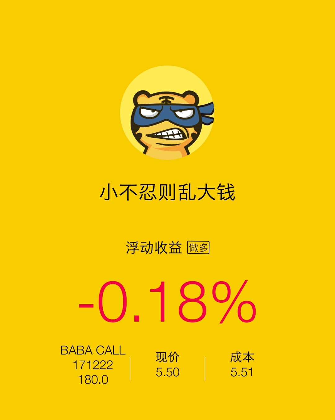$BABA 20171222 180.0 CALL(BABA)$ 阿里巴巴不知今天晚上怎么走