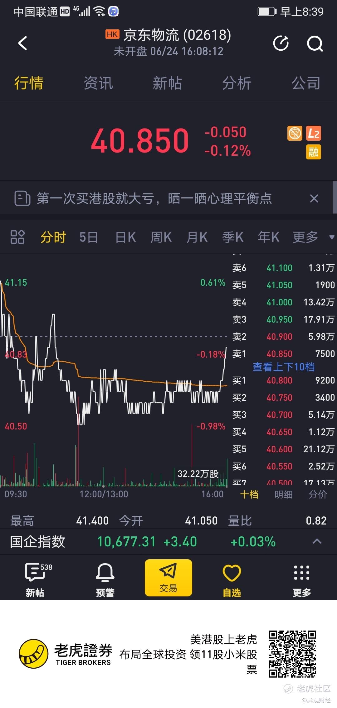 最近持仓的股票中,目前最拉垮的就是$京东物流(02618)$(持仓亏13%)昨天朋友推荐的内蒙牛肉干,下单查看物流情况,发现是中通快递,预计今天送达,送到菜鸟驿站$阿里巴巴-SW(09988)$,现在中通快递配送也不慢了嘛,京东物流的优势以后要如何凸显?
