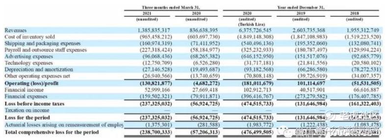 hepsiburada在2018年、2019年、2020年营收分别为19.55亿里拉、26亿里拉、63.76亿里拉(约7.4亿美元);hepsiburada在2021年第一季度营收为13.86亿里拉(约1.6亿美元),上年同期营收为8.37亿里拉。