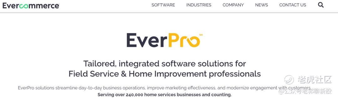 EverCommerce成立于2016年,是一家为中小企业提供用于业务和客户管理的SaaS解决方案公司。公司为超过20万家中小企业提供一系列软件服务和支付处理,主要面向住宅和医疗保健服务以及健身和健康服务提供商等领域。