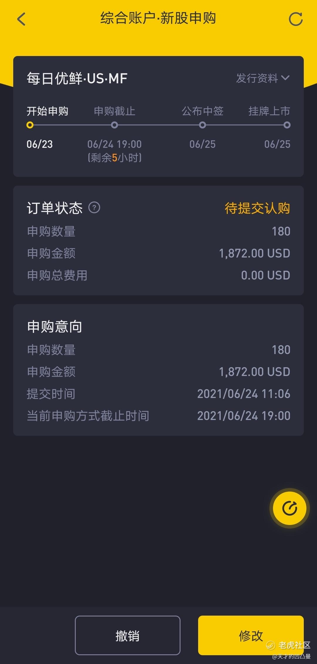 已申购,看来这次至少能中20股,每日优鲜冲鸭😀