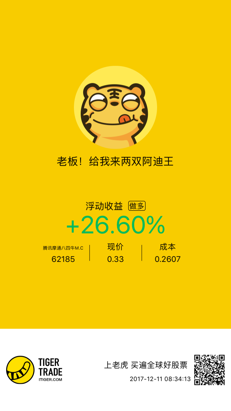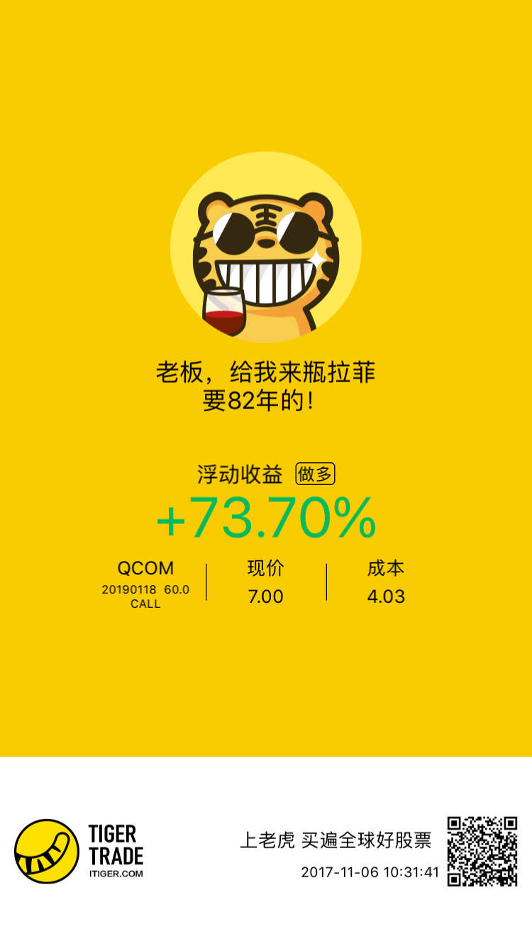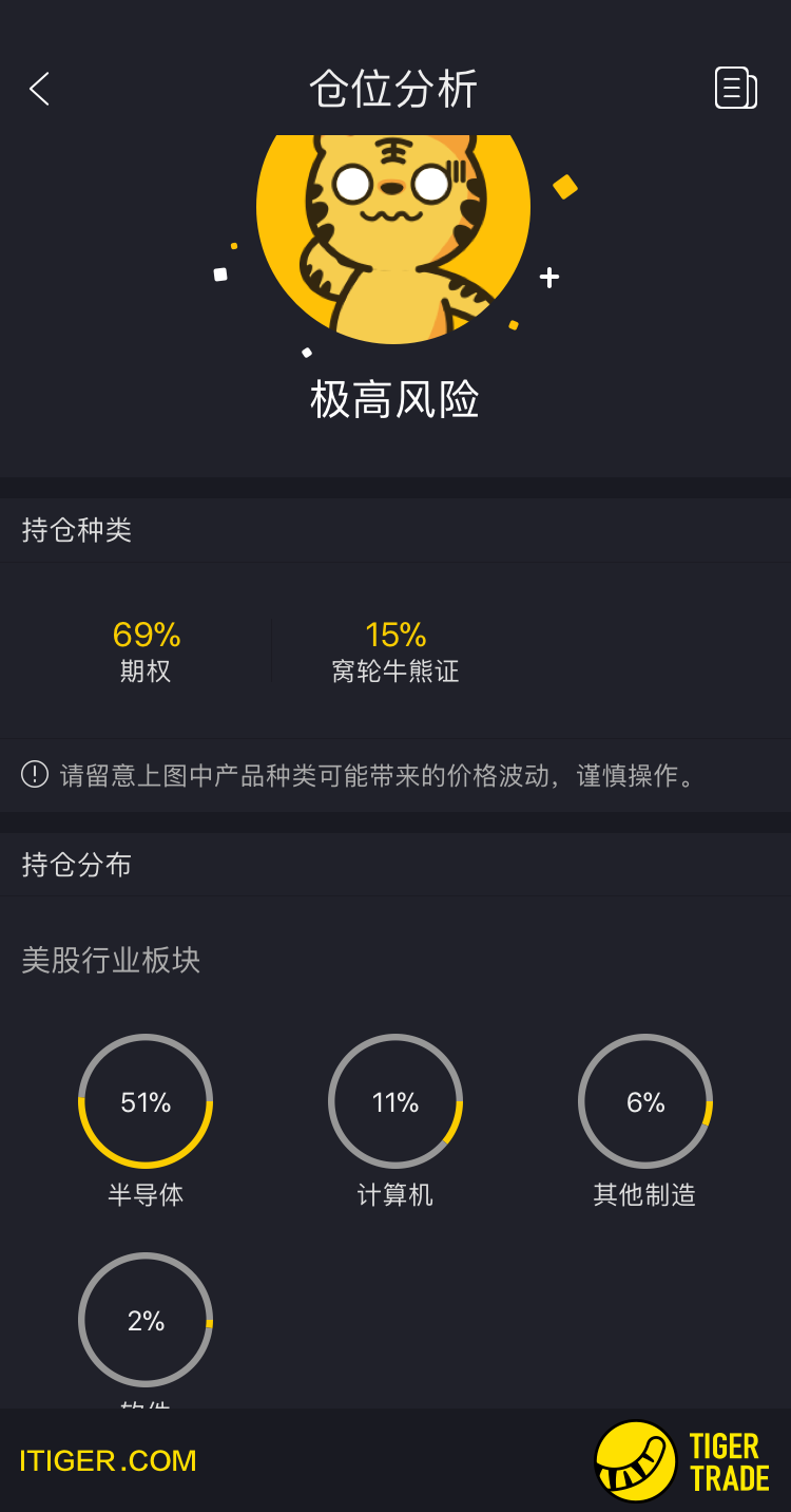 今年没赚到钱,但过得非常充实,最大的收获是结交了一批玩美股的朋友们,不管是老虎证券平台的虎友还是其他平台的,感谢你们无私的分享,从你们身上学到了很多知识,我认为要想赚大钱,还是需要不断的学习,没有人能随随便便成功!感谢老虎证券这个平台,让我走进了美股、港股,让我认识了期权、涡轮、牛熊证,让我解锁了崭新的资产配置模式!