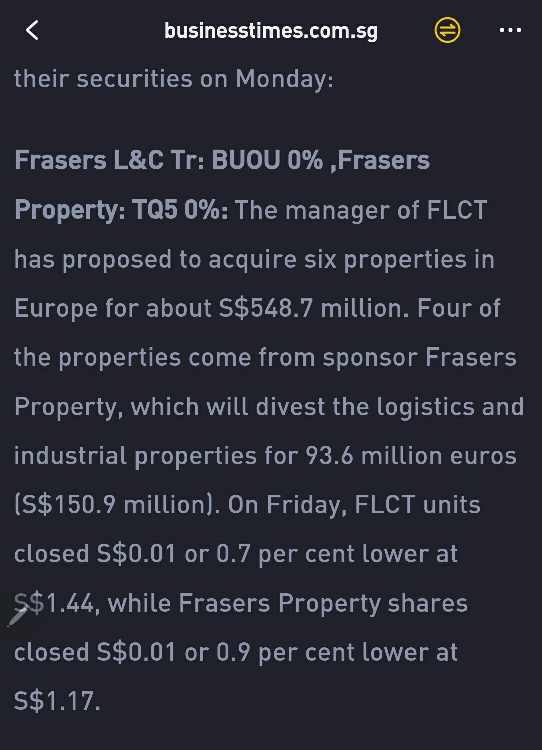 $FRASERS LOGISTICS & IND TRUST(BUOU.SI)$