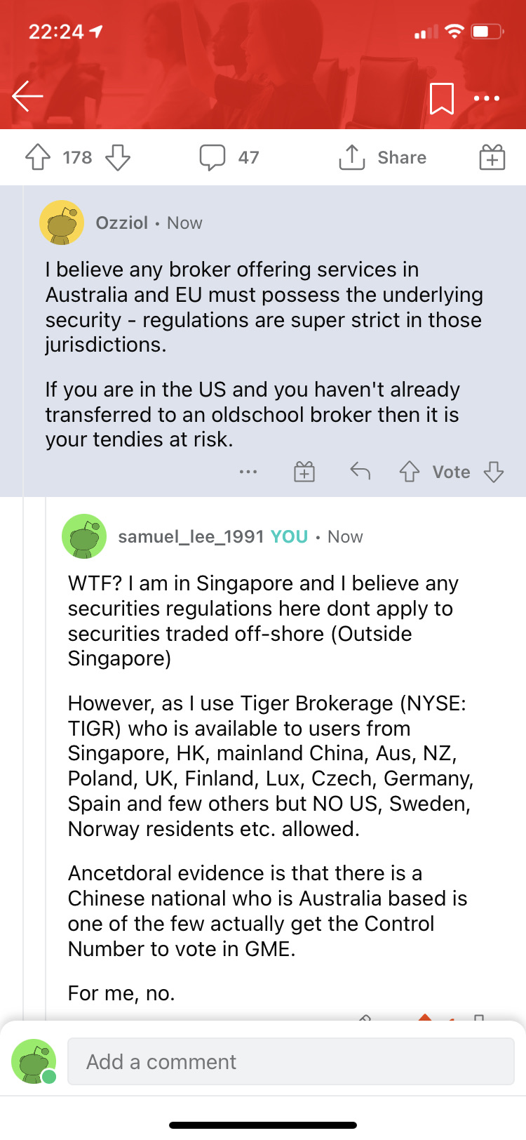 老虎证劵,我相信很早之前我和许多 GME 和 AMC 的投资者根据用户协议已经写电邮至 service@tigerbrokers.com.sg 要求参与企业的股东大会了