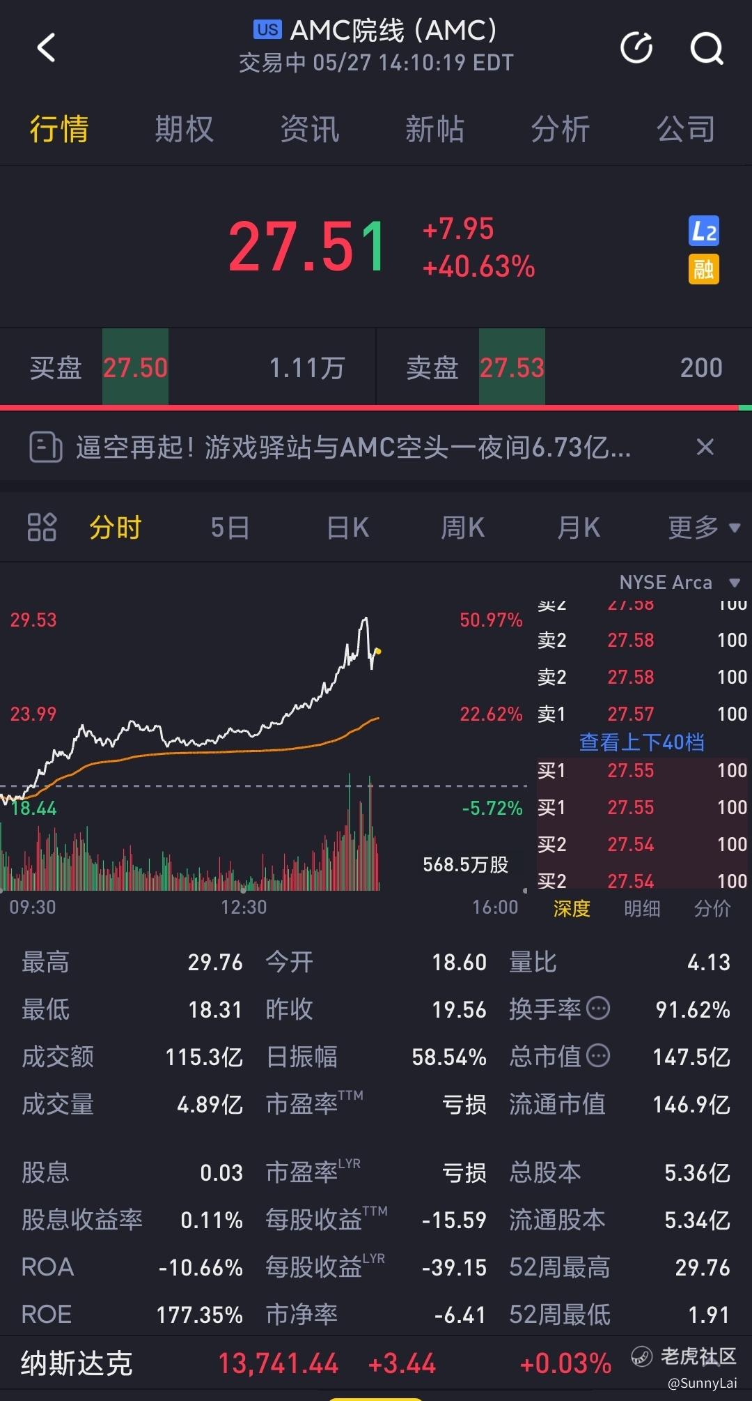 特别是AMC,本周至今已暴涨130%,今天尤为活跃,人潮汹涌之下,信仰股其实是相对安全的。花30秒注目一下AMC的股价变动,你会发现交易频率奇高,但却不会触及2分钟内±15%振幅的小黑屋红线,显示无论是机构还是散户都很珍惜该股今天的赚钱效应,不想过早毁之。结合拜振华再加码六万亿史诗级救市计划,不想也不敢投入实体经济的韭菜,更将把钱花在股市上,韭菜三小强还会一波又一波中兴下去。