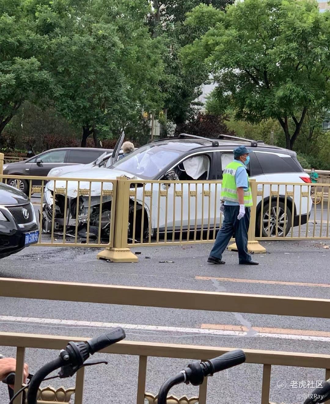 好好的黄金护栏被撞成这样,可惜了,赔死他
