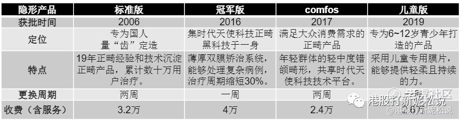 四款隐形矫治器覆盖成人/儿童客群,可满足用户多元化需求。公司现有4款针对不同消费能力、不同年龄段的隐形矫正产品。