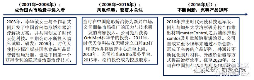 时代天使成立于 2007 年, 2015 年松柏资本(高瓴控股97%)成为控股股东(67.8%),2016年后陆续推出拳头产品时代天使科技冠军版、comfos和儿童隐形版。