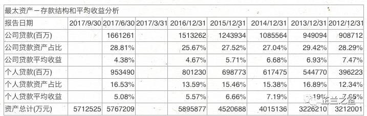 * 从2012年开始,公司和个人贷款的平均收益率不断下行;13年开始在总资产中占比下降,在17年在总资产中的占比开始回升。