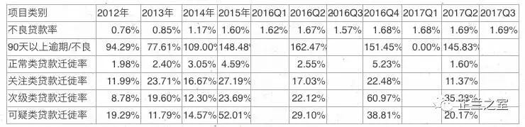 * 从2012年开始,公司不良贷款率不断上升,并在17年呈现趋稳态势;90天以上逾期贷款/不良,从16年Q2开始呈现下降趋势;正常贷款迁移率在17年开始出现下降趋势;不良贷款迁徙率在17年开始出现趋稳。