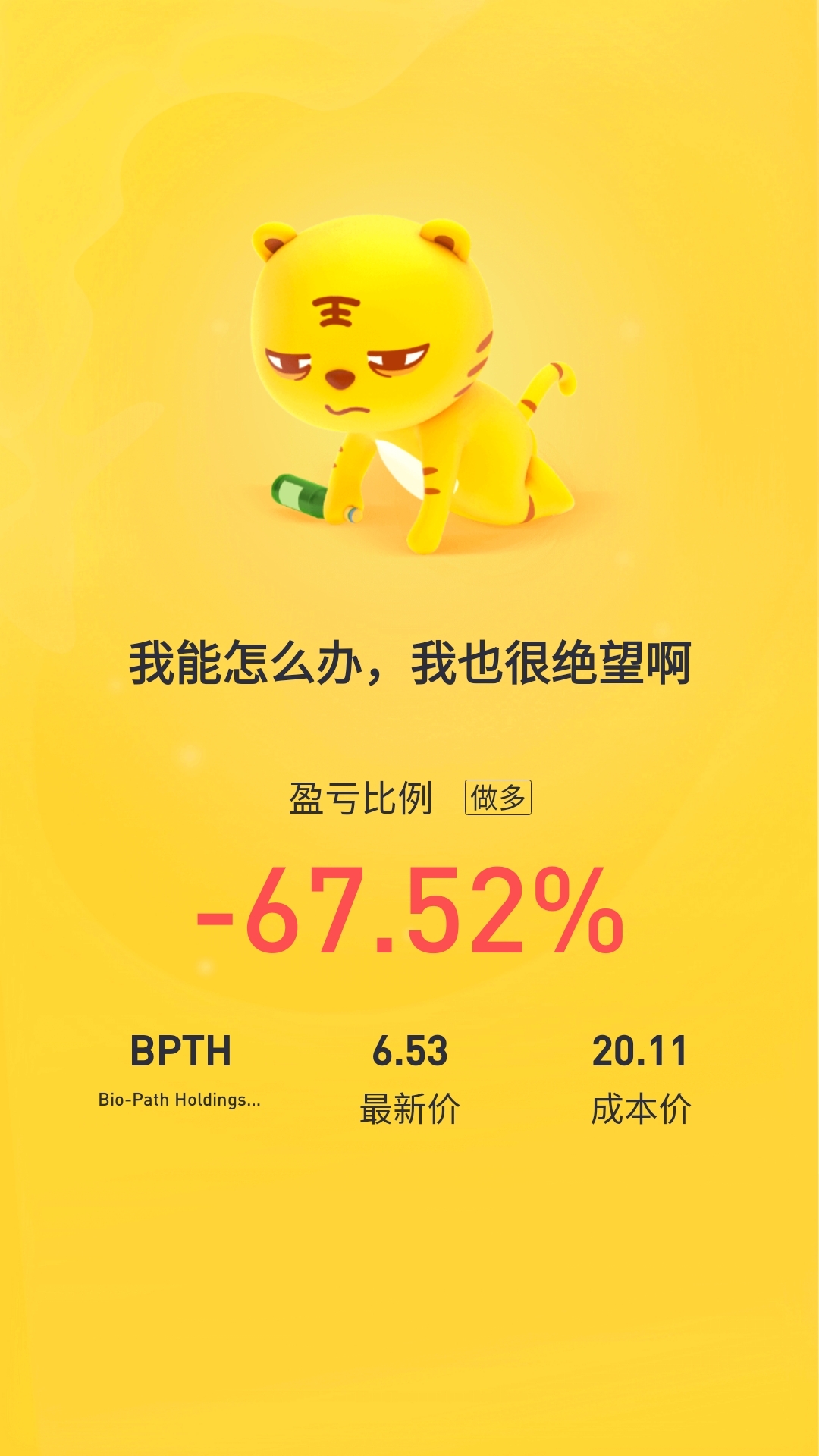{"i18n":{"language":"zh_CN"},"detailType":1,"isChannel":false,"data":{"magic":2,"id":141117752,"tweetId":"141117752","gmtCreate":1625841883776,"gmtModify":1631888814700,"author":{"id":3570400052929996,"idStr":"3570400052929996","authorId":3570400052929996,"authorIdStr":"3570400052929996","name":"Huangwei","avatar":"https://static.tigerbbs.com/89be5114c1e790b27ceba546fd6c9abb","vip":1,"userType":1,"introduction":"","boolIsFan":false,"boolIsHead":false,"crmLevel":11,"crmLevelSwitch":0,"individualDisplayBadges":[],"fanSize":8,"starInvestorFlag":false},"themes":[{"themeId":"5bfad02ab61749c8bfe6573ac7bbe8a3","categoryId":"b76d3c59fc044df59779c041b25852a6","name":"晒晒更赚钱","type":0,"rnLink":"https://laohu8.com/RN?name=RNTheme&page=/theme/detail&rndata={\"themeId\":5bfad02ab61749c8bfe6573ac7bbe8a3}&rnconfig={\"headerBarHidden\": true}","description":"晒晒你的盈亏单,秀秀虎友们的实力!","image":"https://static.tigerbbs.com/347184265ee0be8c363259951f8033cb"}],"images":[{"img":"https://static.tigerbbs.com/0f6fd47da58f498e29fe8e5394321a4e","width":"1080","height":"1920"}],"coverImages":[{"img":"https://static.tigerbbs.com/0f6fd47da58f498e29fe8e5394321a4e","width":"1080","height":"1920"}],"extraTitle":"","html":"<html><head></head><body><p><a href=\"https://laohu8.com/S/BPTH\">$Bio-Path Holdings, Inc.(BPTH)$</a>越来越不能玩了</p><p><img src=\"https://static.tigerbbs.com/0f6fd47da58f498e29fe8e5394321a4e\" tg-width=\"1080\" tg-height=\"1920\"></p></body></html>","htmlText":"<html><head></head><body><p><a href=\"https://laohu8.com/S/BPTH\">$Bio-Path Holdings, Inc.(BPTH)$</a>越来越不能玩了</p><p><img src=\"https://static.tigerbbs.com/0f6fd47da58f498e29fe8e5394321a4e\" tg-width=\"1080\" tg-height=\"1920\"></p></body></html>","text":"$Bio-Path Holdings, Inc.(BPTH)$越来越不能玩了","highlighted":1,"essential":1,"paper":1,"likeSize":0,"commentSize":1,"repostSize":0,"favoriteSize":0,"link":"https://laohu8.com/post/141117752","repostId":0,"isVote":1,"tweetType":1,"viewCount":809,"commentLimit":10,"likeStatus":false,"favoriteStatus":false,"reportStatus":false,"symbols":["BPTH"],"verified":2,"subType":0,"readableState":1,"langContent":"CN","currentLanguage":"CN","warmUpFlag":false,"orderFlag":false,"shareable":true,"causeOfNotShareable":"","featuresForAnalytics":[],"commentAndTweetFlag":false,"andRepostAutoSelectedFlag":false,"upFlag":false,"length":43,"xxTargetLangEnum":"ZH_CN"},"commentList":[{"id":5633888,"commentId":"5633888","gmtCreate":1629808410701,"gmtModify":1629808410701,"authorId":3489624233592144,"author":{"id":3489624233592144,"idStr":"3489624233592144","authorId":3489624233592144,"name":"空气质量","avatar":"https://static.laohu8.com/default-avatar.jpg","vip":1,"crmLevel":1,"crmLevelSwitch":0,"individualDisplayBadges":[]},"repliedAuthorId":0,"objectId":141117752,"objectIdStr":"141117752","type":1,"supId":0,"supIdStr":"0","prevId":0,"prevIdStr":"0","content":"怎么能这么流弊呀?基本能买在最高点,你这是实力的表现吧","text":"怎么能这么流弊呀?基本能买在最高点,你这是实力的表现吧","html":"怎么能这么流弊呀?基本能买在最高点,你这是实力的表现吧","likeSize":0,"commentSize":0,"subComments":[],"verified":10,"allocateAmount":0,"commentType":"valid","coins":0,"score":0,"disclaimerType":0}],"isCommentEnd":false,"isTiger":false,"isWeiXinMini":false,"url":"/m/post/141117752"}