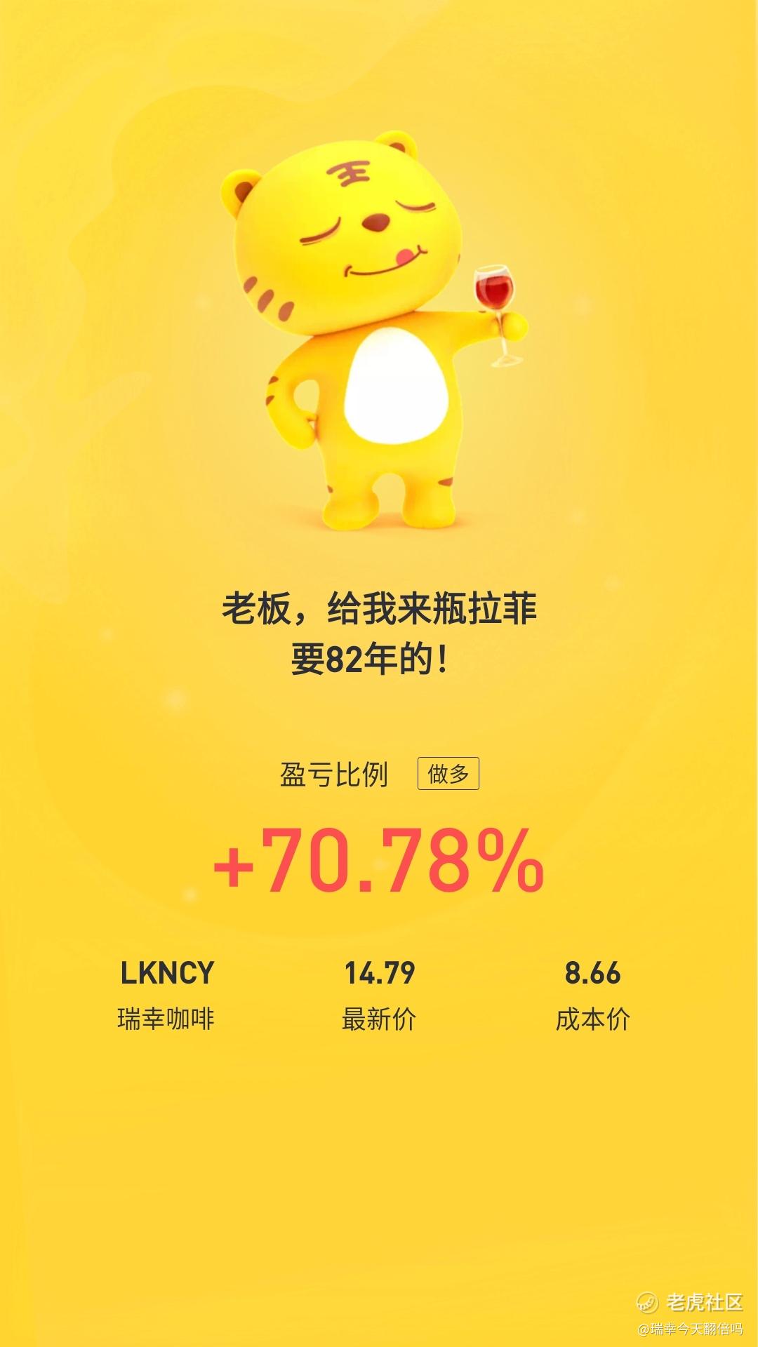 $瑞幸咖啡(LKNCY)$截图留念,但不是因为瑞幸收益超过70%,这是持有半年没动的结果,与很多热门股相比并不算很高很快,而是因为投资美股一年多收益达到了300%所以留念。特斯拉从拆股前的900一直持有到拆股后的900附近(对应拆股前的4500),也是长期持有不卖出投资理念,经历过各种大涨大跌都没动,只加仓,做到了坚定持有。随后减仓开始投瑞幸,不是不看好特斯拉了,而是太看好瑞幸了,但又没有多余资金,只能忍痛卖掉了大部分特斯拉,瑞幸在粉单波动更剧烈,但赛道好前途一片光明,太有可能翻倍了。选好股票,坚定信念,长期持有,涨跌不慌,要有耐心,很难不赚钱
