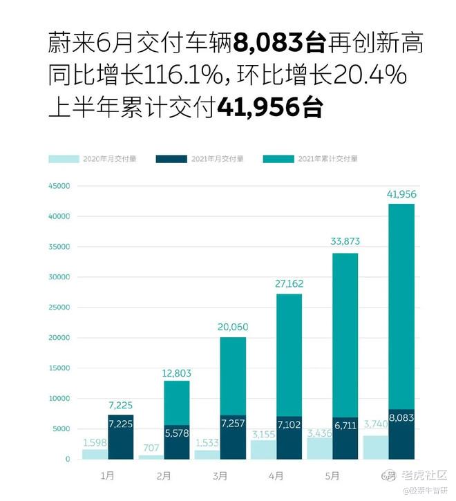 蔚来最新公布的6月销量数据显示,销量首次突破8000辆,环比增长20.4%,同比增长116.1%。这份数据不仅是蔚来目前以来单月最高销量纪录,同时也是众多造车新势力中最高的单月纪录。
