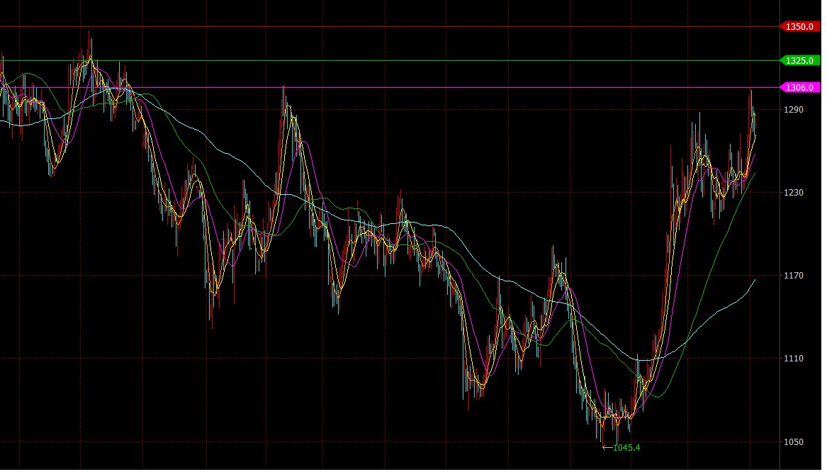 另一方面,相对应助力黄金上涨趋势,遐想一下,若突破后面1325,1350阻力后,不排除带来本年度黄金的主升行情。