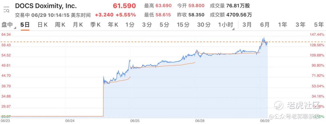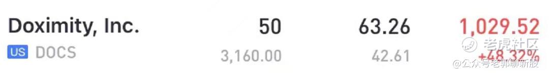 再医脉通IPO之前的几天,同样行业类型的美国版医生社区美股 Doximity 率先上市,由于业绩太出色,我迫不及待的第一时间抢了一点,小赚一笔,Doximity开盘首日就大涨100%,之后仍然继续每天大涨!