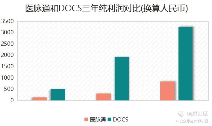 三年的纯利润上,医脉通是DOCS大约四分之一的SIZE。