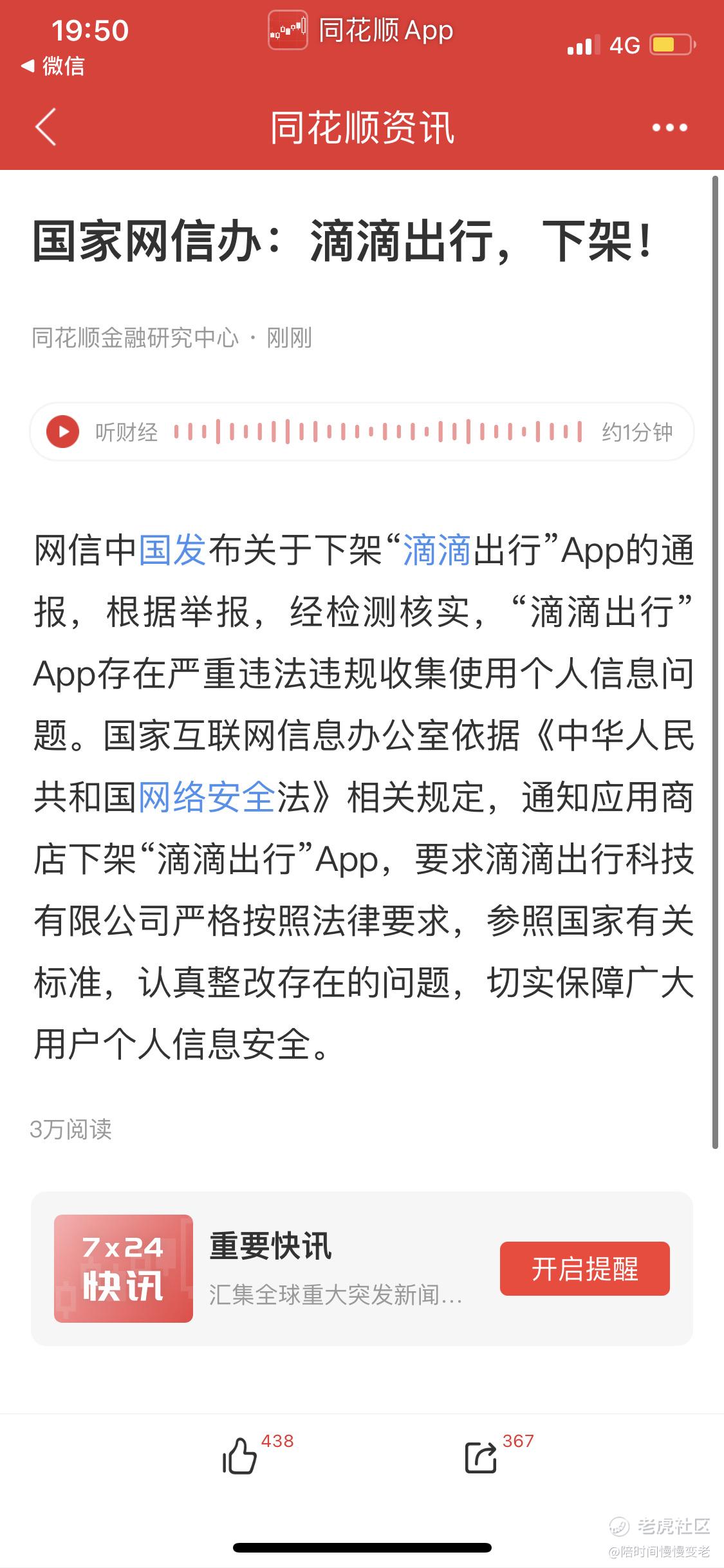 如果只是这样,说明是件小事,原来是国家对滴滴突然之间美国上市感到不满,给予警告。
