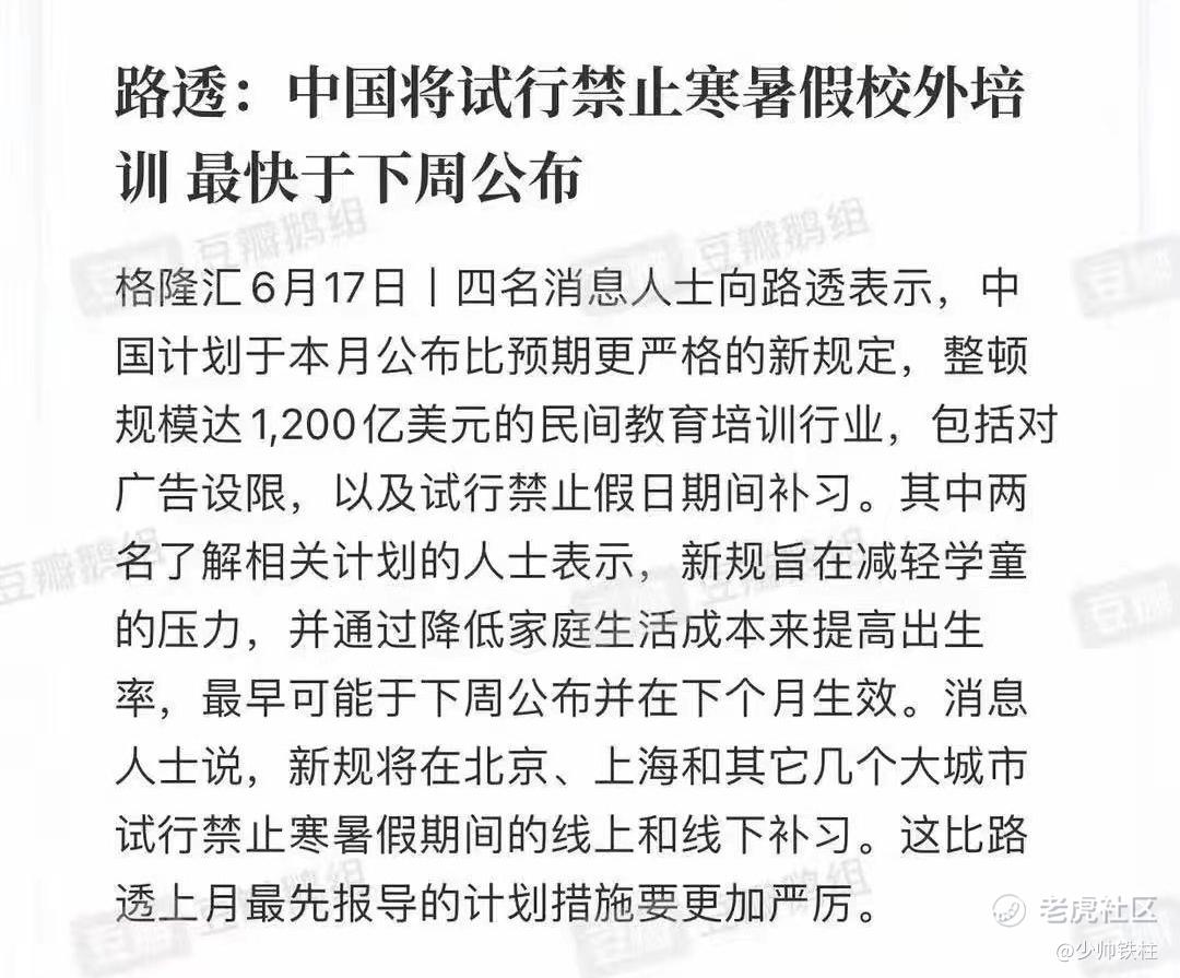 说实话,寒暑假禁止补课,这个超出了我的认知范围。一些学习成绩相对一般,但是好学,希望迎头赶上的学生应该很多,如果禁止寒暑假补课,这部分学生学习的权力,又怎么去保证呢?所以,我是一头雾水。我推断,这则新闻报道的,不会太准确。将来可能会出台一些限制的规则,类似于王者荣耀防止未成年人的沉迷机制一样,但是完全禁止,我觉得可能性不大。