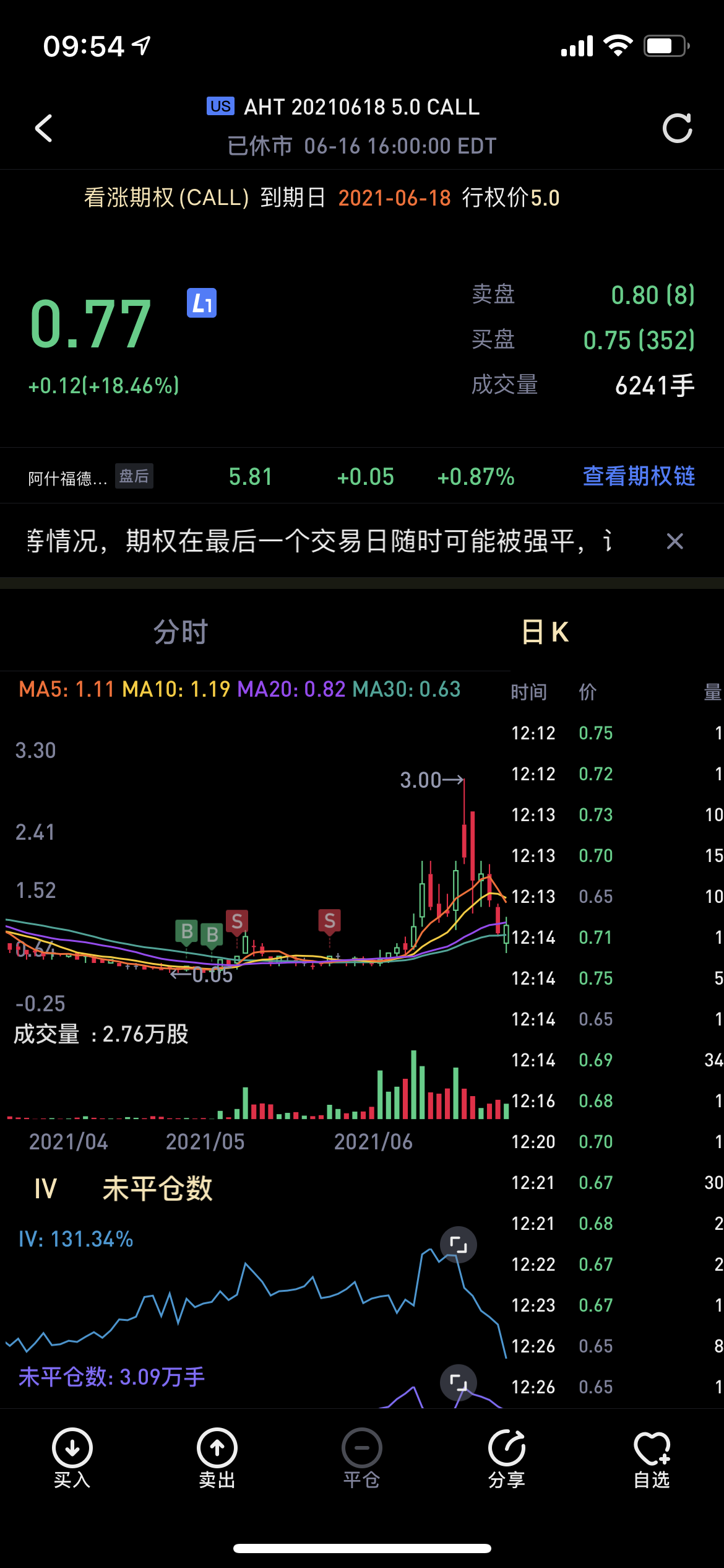 一路走来,踩过不少坑,也吃过很多亏。比如,我在$阿什福德酒店管理信托公司(AHT)$ 股价最低的时候买入了三百手六月5块钱的看涨期权,在该期权短期爆发翻了七倍的时候没有出货,结果后来跌到了只翻了两三倍的时候仓皇出逃,以至于错过了后来的三十倍。