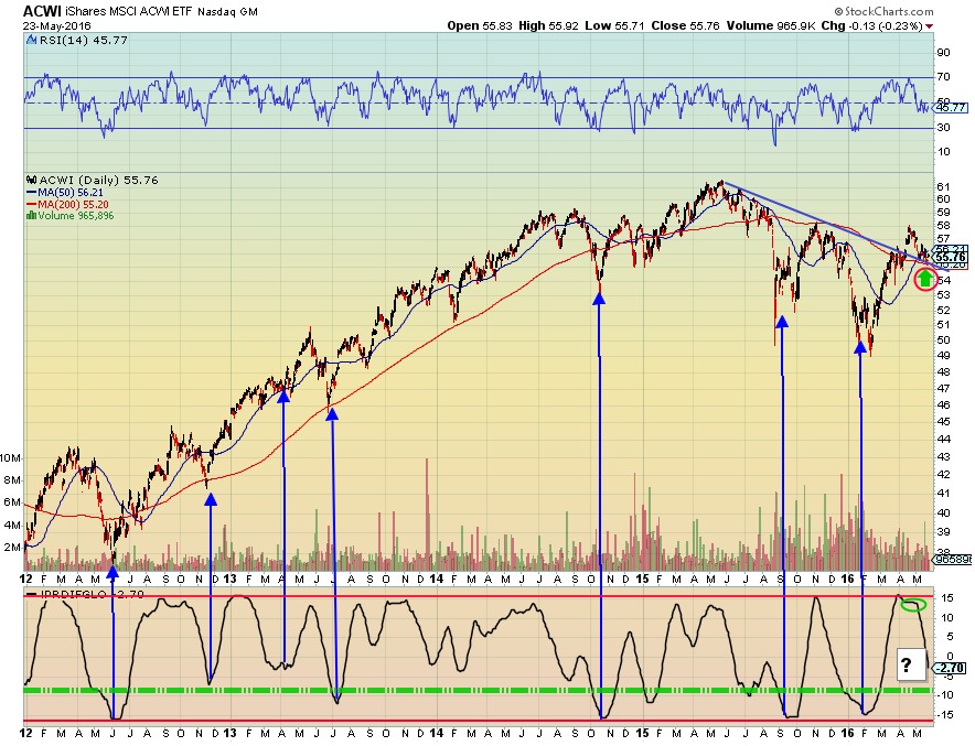 上面的图是我这周一画的,没有改成最新的,不妨借此回顾一下,当时ACWI位于趋势线上方,200MA支撑和50MA之间,当时我在扩散指标上打了一个问号。