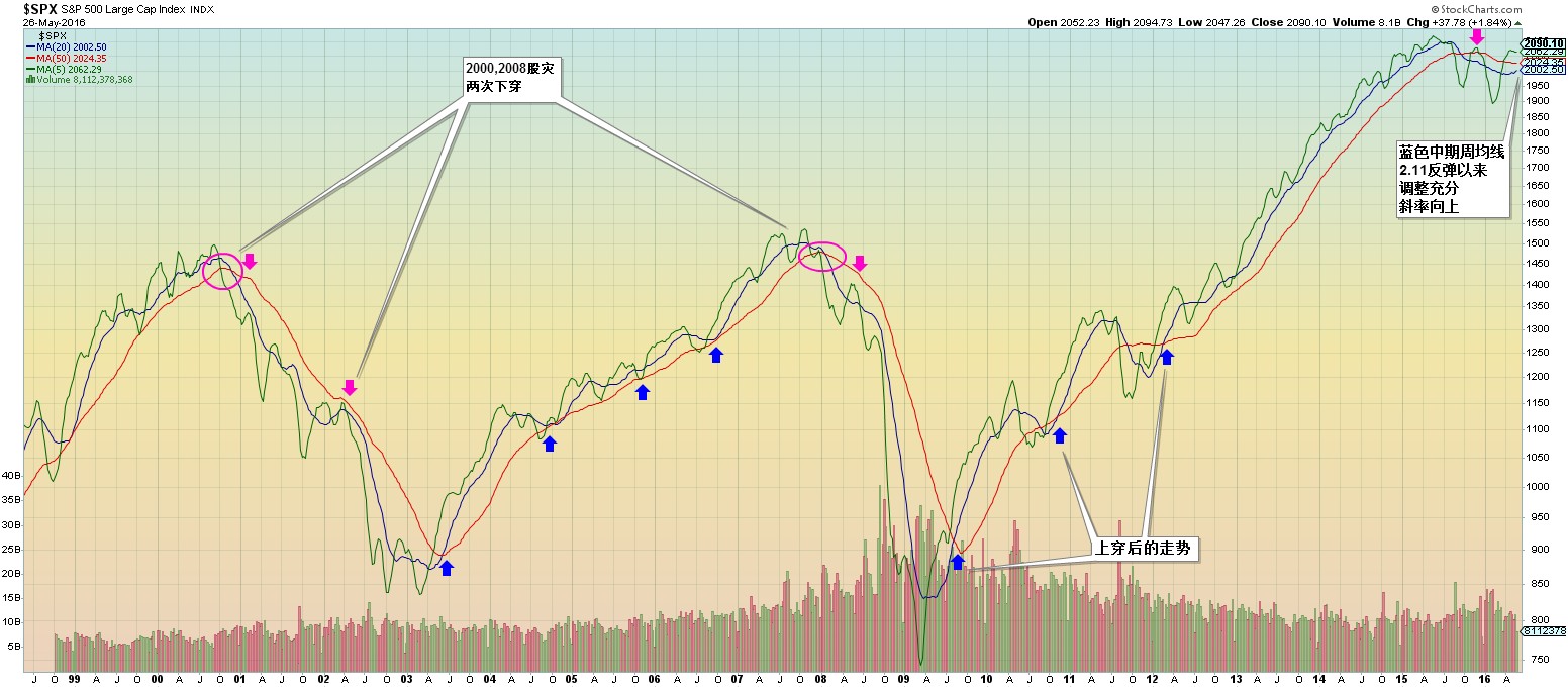 再换个角度,从当前日线级别来看只要标普在2050平台上方,就意味着标普仍然强势,与周均线结论吻合。