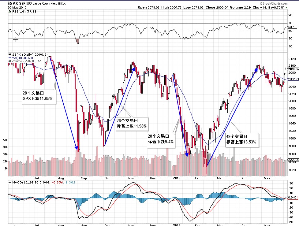 2014年11月之前,美股一直在QE的周期里,月线行情更多的也是以单边上扬为主。在当下标普面临的局面下,更有比较价值的是标普2015年的走势。