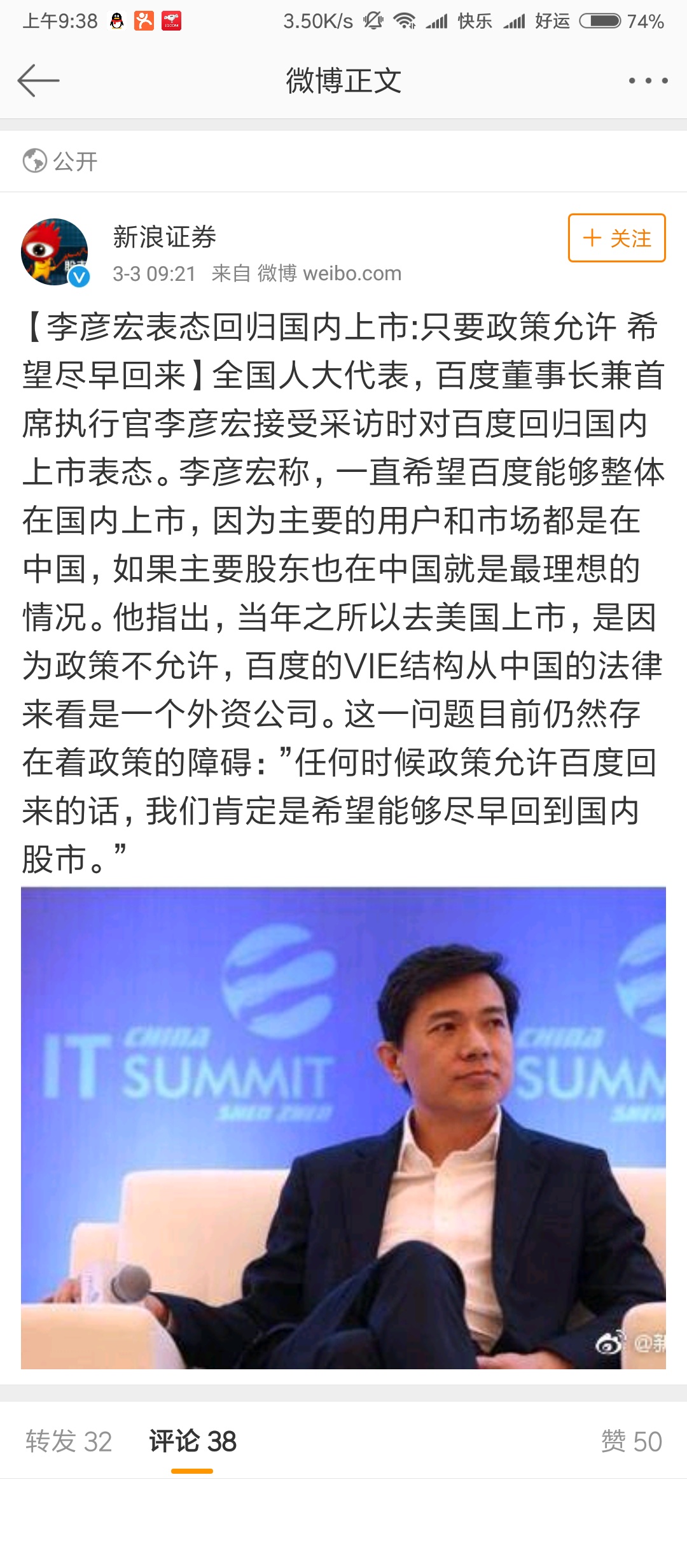 【李彦宏表态回归国内上市】