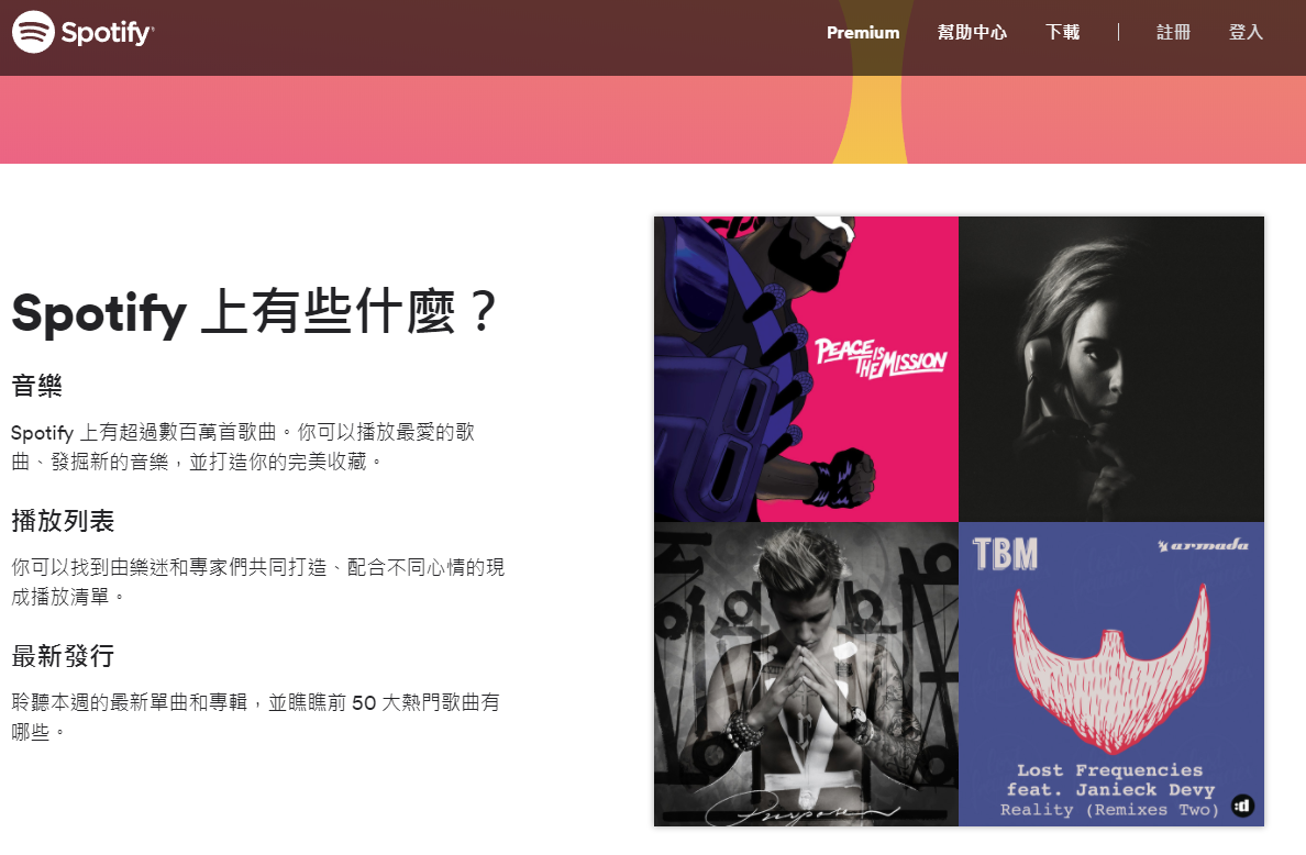 在全球市场,Spotify仍然是具有巨大优势地位的音乐服务第一名,服务覆盖了几乎所有的国家和地区。Spotify同时推出免费服务和会员,免费用户需要收听广告。其免费用户和会员人数总和为1.4亿人,远远超过苹果音乐。