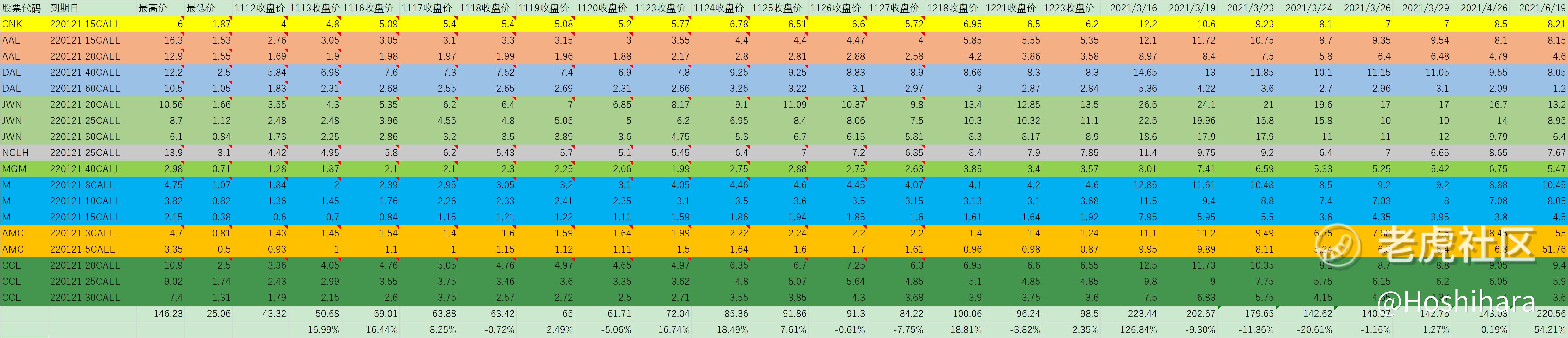有时候不是我们没有机会,而是机会就在眼前我们却没有发现。这市场到处都是机会,只是我们少了发现机会的眼睛。有多少股票都是眼睁睁看着涨起来的,或者刚涨了一点就着急出手。曾经在去年11月建立了一个经济复苏股的远期期权组合观察列表,但是当时觉得不应追高就想着等下调到低点再买,等着等着后来就忘了继续看了。但是今天一看已经翻了5倍了,AMC更是翻了10倍了,有点郁闷啊!😭$嘉年华邮轮(CCL)$$AMC院线(AMC)$$游戏驿站(GME)$$蔚来(NIO)$$美国航空(AAL)$