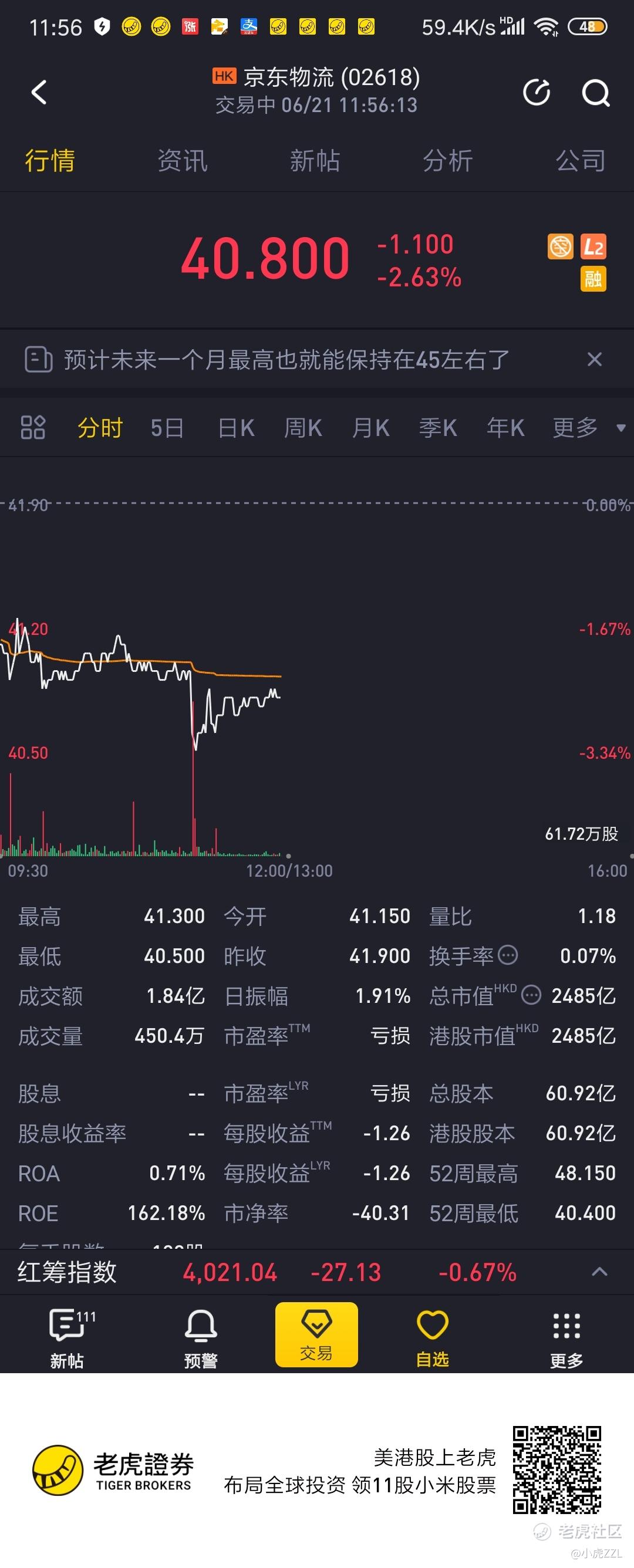 这个京东物流太不给力了,枉我开始那么的看好你,现在被他套住了,好难出来了。好期待你能快点涨起来啊!