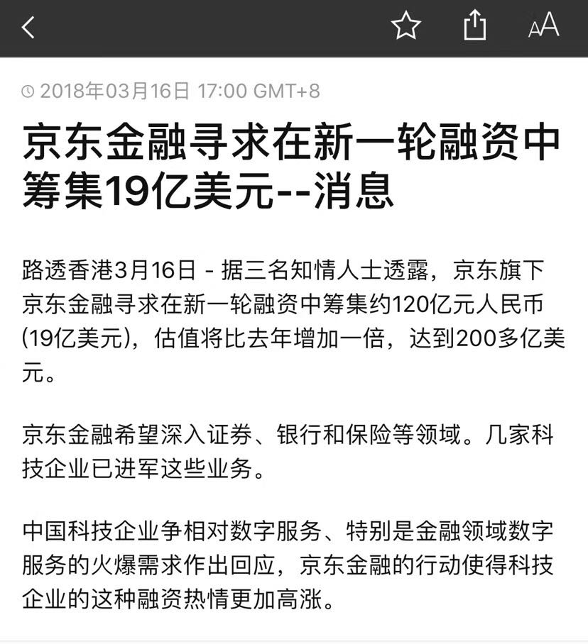 {"i18n":{"language":"zh_CN"},"detailType":1,"isChannel":false,"data":{"magic":2,"id":168037,"tweetId":"168037","gmtCreate":1521196588816,"gmtModify":1704890401509,"author":{"id":3442364319369394,"idStr":"3442364319369394","authorId":3442364319369394,"authorIdStr":"3442364319369394","name":"Jack..","avatar":"https://static.tigerbbs.com/9b86839e5db07742307eca93c386ee8c","vip":1,"userType":1,"introduction":"","boolIsFan":false,"boolIsHead":false,"crmLevel":3,"crmLevelSwitch":1,"currentWearingBadge":{"badgeId":"35ec162348d5460f88c959321e554969-1","templateUuid":"35ec162348d5460f88c959321e554969","name":"精英交易员","description":"证券或期货账户累计交易次数达到30次","bigImgUrl":"https://static.tigerbbs.com/ab0f87127c854ce3191a752d57b46edc","smallImgUrl":"https://static.tigerbbs.com/c9835ce48b8c8743566d344ac7a7ba8c","grayImgUrl":"https://static.tigerbbs.com/76754b53ce7a90019f132c1d2fbc698f","redirectLinkEnabled":0,"hasAllocated":1,"isWearing":1,"stampPosition":0,"hasStamp":0,"allocationCount":1,"allocatedDate":"2021.12.21","exceedPercentage":"60.08%","individualDisplayEnabled":0},"individualDisplayBadges":[],"fanSize":9,"starInvestorFlag":false},"themes":[],"images":[{"img":"https://static.laohu8.com/1c369a81297c73adb8c324465c4a26a6"}],"coverImages":[{"img":"https://static.laohu8.com/1c369a81297c73adb8c324465c4a26a6"}],"title":"京东金融计划融资19亿美元","extraTitle":"","html":"<html><head></head><body><p>$京东(JD)$ </p> <p>京东金融计划融资19亿美元</p> <p><img src=\"https://static.laohu8.com/1c369a81297c73adb8c324465c4a26a6\"></p> <p></p> <p></p> <p></p></body></html>","htmlText":"<html><head></head><body><p>$京东(JD)$ </p> <p>京东金融计划融资19亿美元</p> <p><img src=\"https://static.laohu8.com/1c369a81297c73adb8c324465c4a26a6\"></p> <p></p> <p></p> <p></p></body></html>","text":"$京东(JD)$ 京东金融计划融资19亿美元","highlighted":1,"essential":1,"paper":2,"likeSize":0,"commentSize":0,"repostSize":0,"favoriteSize":0,"link":"https://laohu8.com/post/168037","repostId":0,"isVote":1,"tweetType":1,"viewCount":1411,"commentLimit":10,"likeStatus":false,"favoriteStatus":false,"reportStatus":false,"symbols":["JD"],"verified":2,"subType":0,"readableState":1,"langContent":"CN","currentLanguage":"CN","warmUpFlag":false,"orderFlag":false,"shareable":true,"causeOfNotShareable":"","featuresForAnalytics":[],"commentAndTweetFlag":false,"andRepostAutoSelectedFlag":false,"upFlag":false,"length":34,"xxTargetLangEnum":"ZH_CN"},"commentList":[],"isCommentEnd":true,"isTiger":false,"isWeiXinMini":false,"url":"/m/post/168037"}