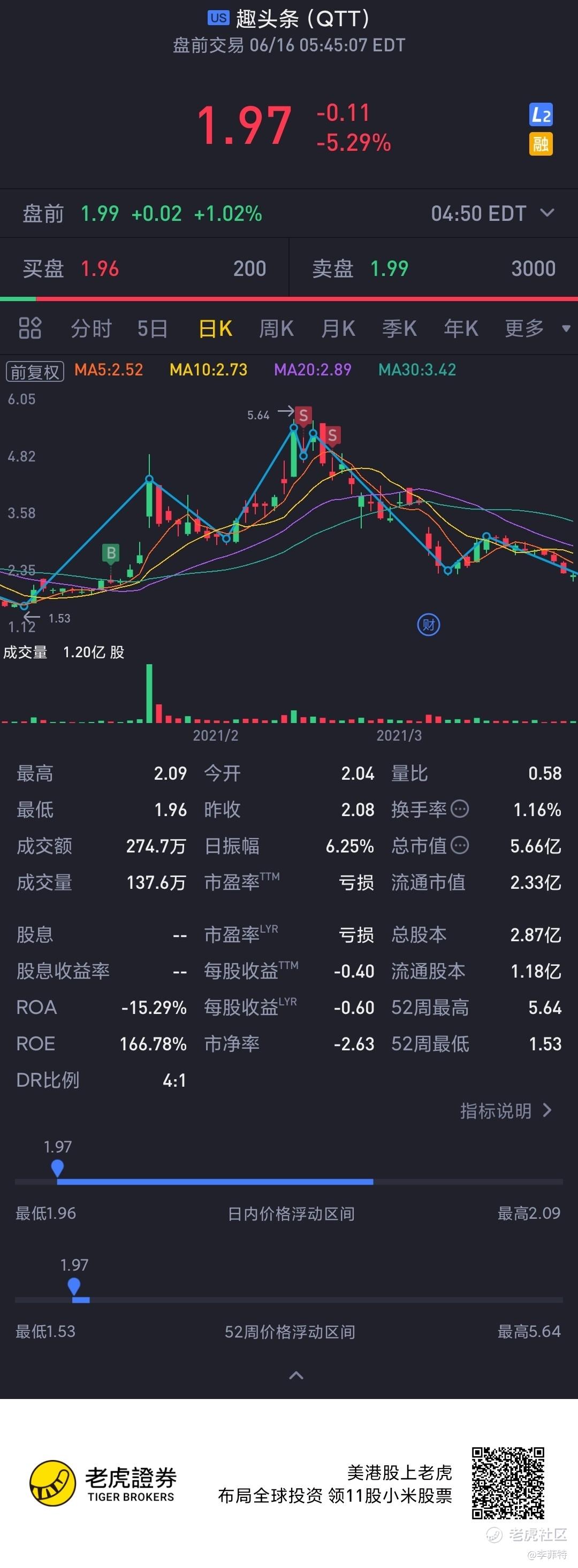 记得当时为此还特地去下载了趣头条APP米读甚至还试着在上面写写东西,试过后又再次看了他的财报跟当时能收集到的所有信息,最后好像在2.25的时候入手了[贱笑] [贱笑]