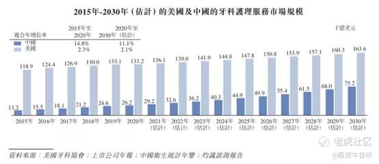 中国拥有牙科服务市场非常广阔,而更关键的是,和美国相比,我国的市场还有巨大开拓空间及未来的发展潜力。