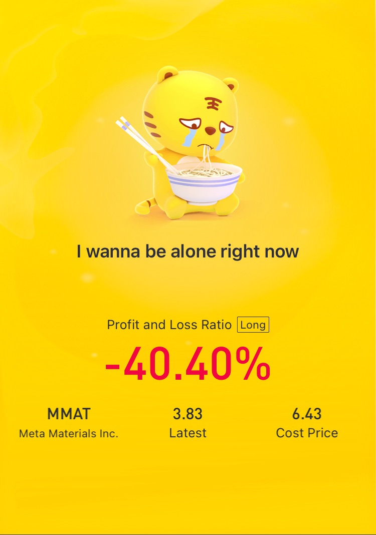 $Meta Materials Inc.(MMAT)$All this will be worth it. May take months but l will be here waiting and hodl-ing