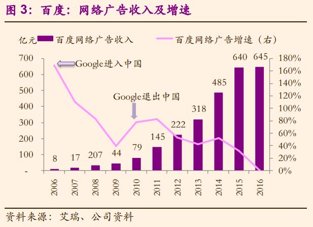 1. 爱奇艺的增长对百度越来越重要:百度传统的在线广告已经陷入了停滞,而爱奇艺收入年增长在50%以上,并在2017年贡献了174亿的收入,约占传统在线广告收入的30%;